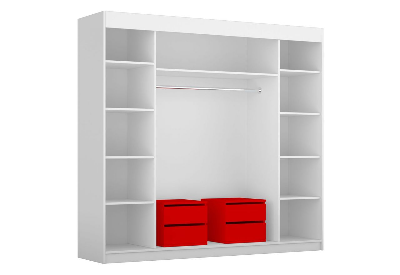 Szafa TOMES II idealnie pasuje do sypialni dzięki swoim drzwiom – trzy fronty pozwalają Ci na łatwy dostęp do każdej przestrzeni w szafie. Jasne barwy idealnie będą współgrać w nowoczesnej aranżacji. Praktyczne wnętrze sprawi, że segregacja ubrań nie będzie sprawiać Ci trudności. Szafa została wykonana z płyty laminowanej o grubości 16 milimetrów. Wyposażona w wysokiej jakości prowadnice aluminiowe i system drzwi przesuwnych firmy Sevroll typ Micra będą służyć Ci przez wiele lat. Dzięki systemowi komfortowo i bez wysiłku przesuniesz drzwi w obie strony. Szafa TOMES II jest wyposażona w drążek i pojemne półki. Krawędzie płyt zabezpieczone okleiną ABS wydłużają żywotność mebla. Wyprodukowana z najwyższej jakości materiałów. Dla zapewnienia Twojego komfortu użytkowania, stworzyliśmy możliwość rozbudowania szafy o dodatkowe akcesoria jak kontenerki czy oświetlenie LED.