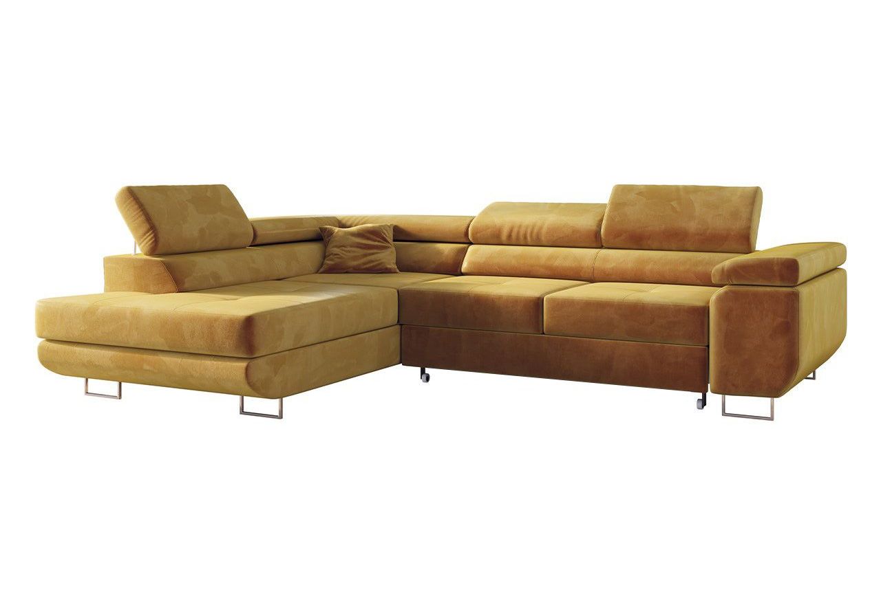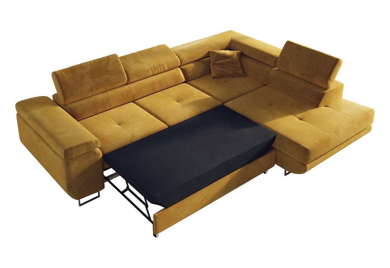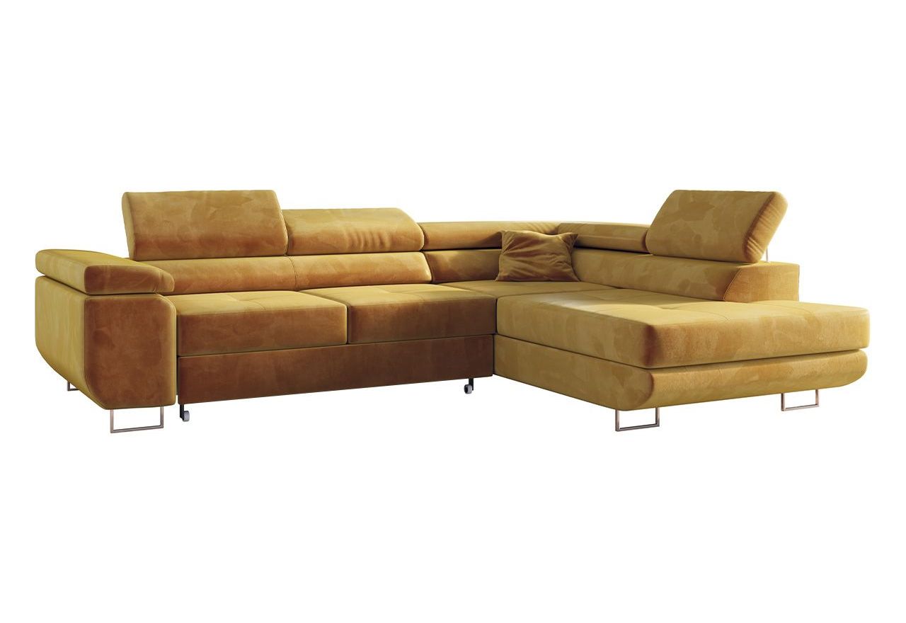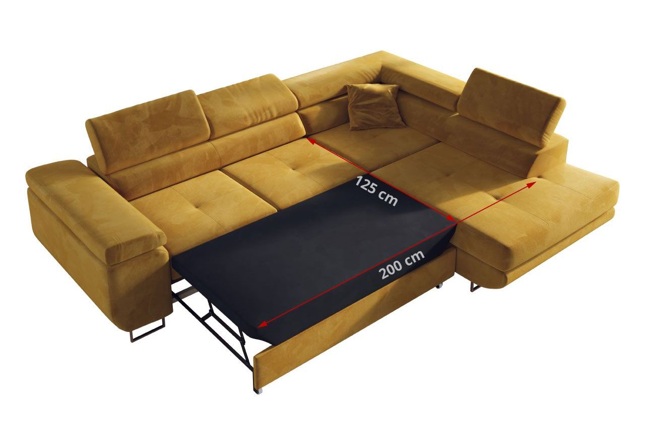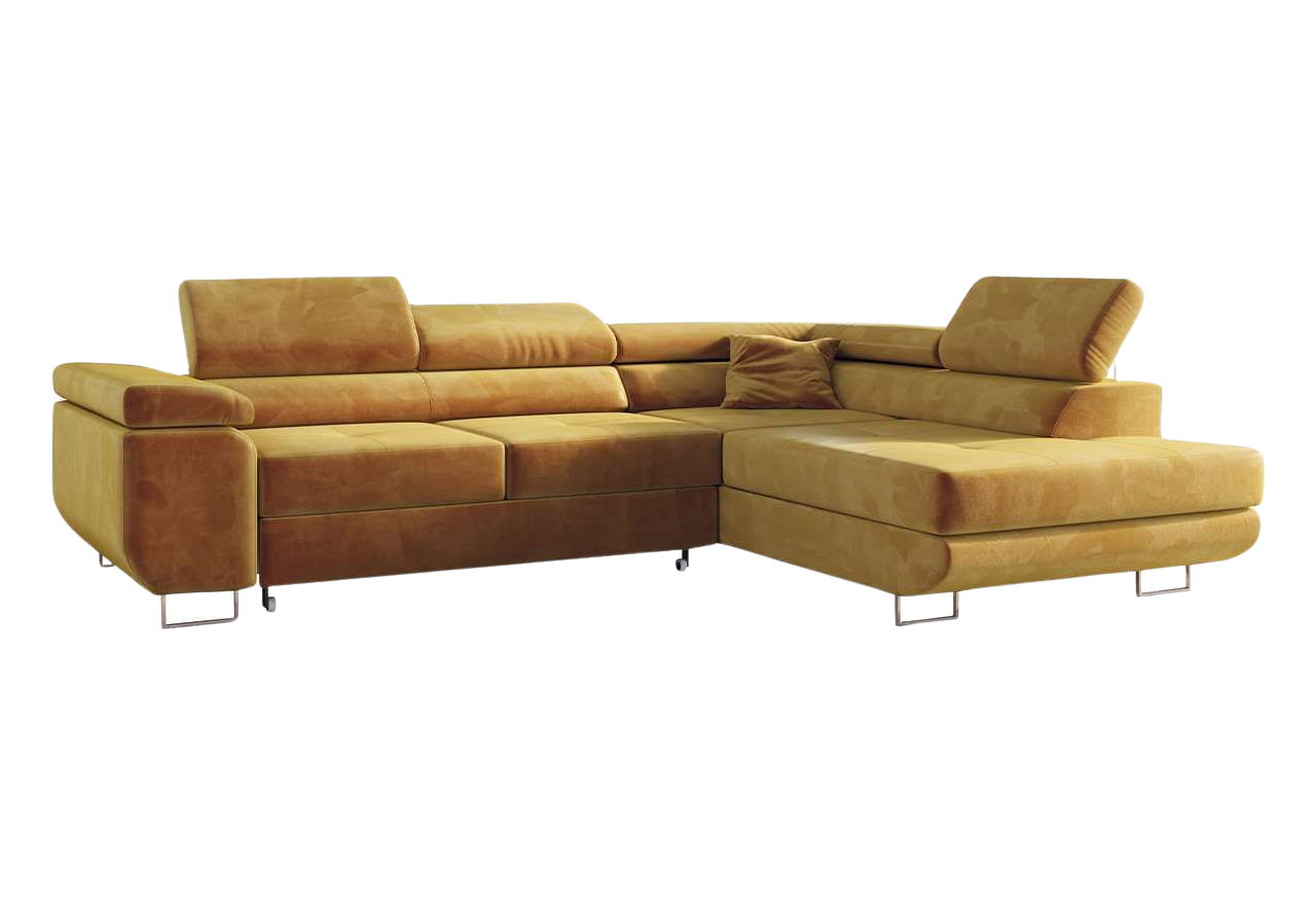 Konstrukcja narożnika opiera się na wysokiej jakości sprężynach oraz trwałej piance wysokoelastycznej T30, co zapewnia komfort użytkowania oraz odpowiednie podparcie. Narożnik posiada funkcję spania, umożliwiając szybkie i wygodne przekształcenie go w łóżko, co czyni go idealnym rozwiązaniem dla gości lub codziennego użytku. Dodatkowym atutem jest praktyczny pojemnik na pościel, który pomaga w utrzymaniu porządku i optymalnym wykorzystaniu przestrzeni. Automat na sprężynach sprawia, że otwieranie pojemnika jest wygodne i szybkie. Dzięki swojej funkcjonalności i estetycznemu designowi, stanowi harmonijne połączenie komfortu i praktyczności.