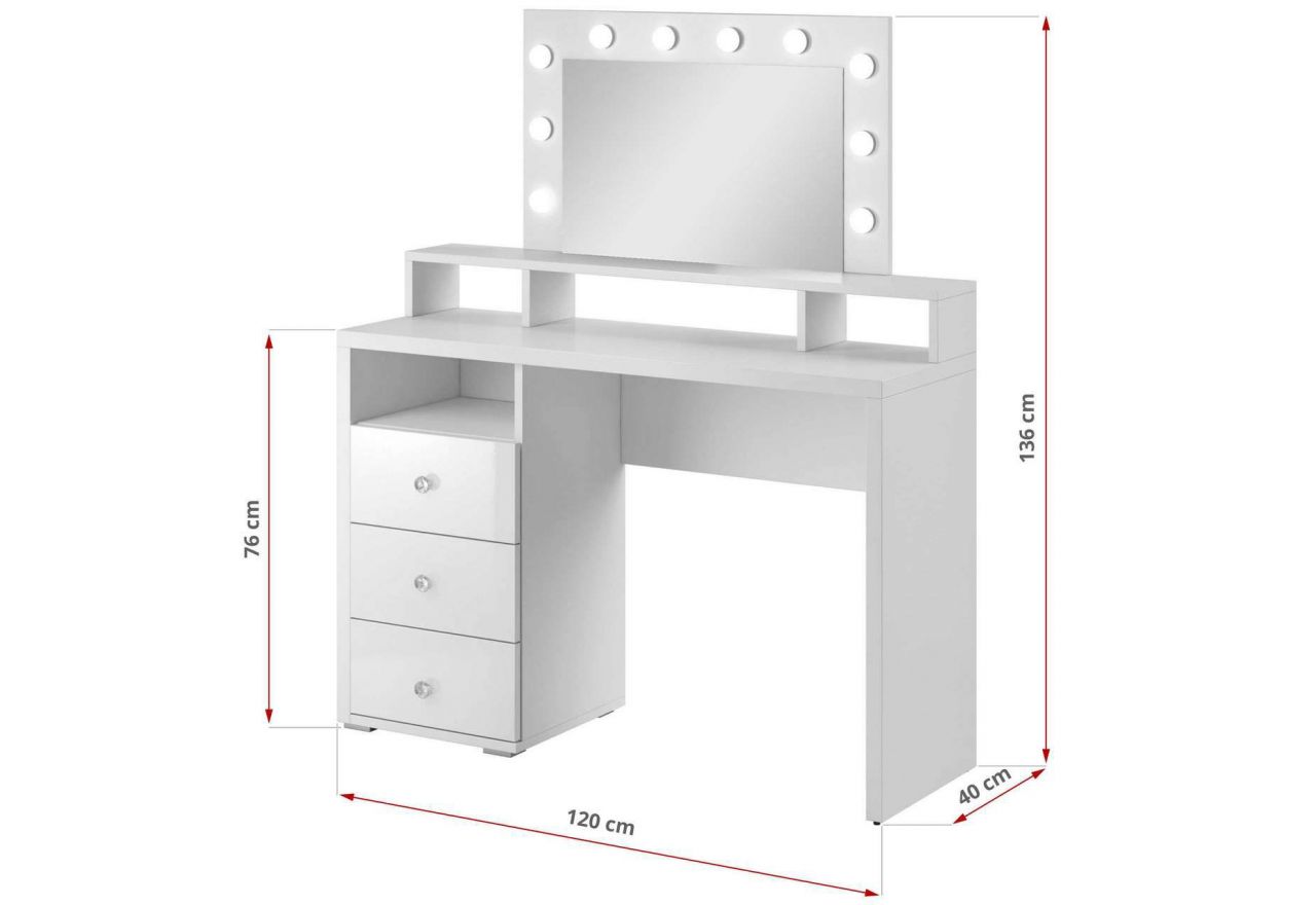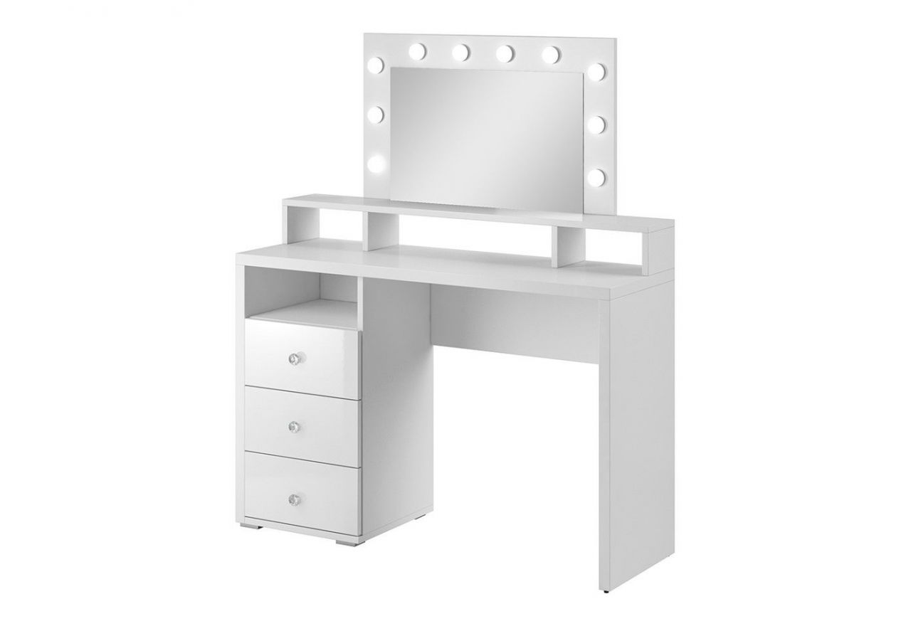 Poprzedni arrow_back_ios_newNastępny arrow_forward_iosBiała toaletka z oświetleniem i 3 szufladami do sypialni - BLING