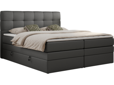 Narożnik FOX wyposażono również w funkcję spania. Przekształcenie do formy łóżka przebiega bardzo płynnie i szybko. Wystarczy pociągnąć za uchwyt pod dłuższą otomaną i wysunąć wspomagany automatem Delfin specjalny tapicerowany pianką wózek, który wraz z siedziskami utworzy powierzchnię spania. W krótszej otomanie znajdziemy wyposażony w automaty sprężynowe pojemnik na pościel. Mebel stoi na szerokich nóżkach z tworzywa sztucznego w srebrnym kolorze.