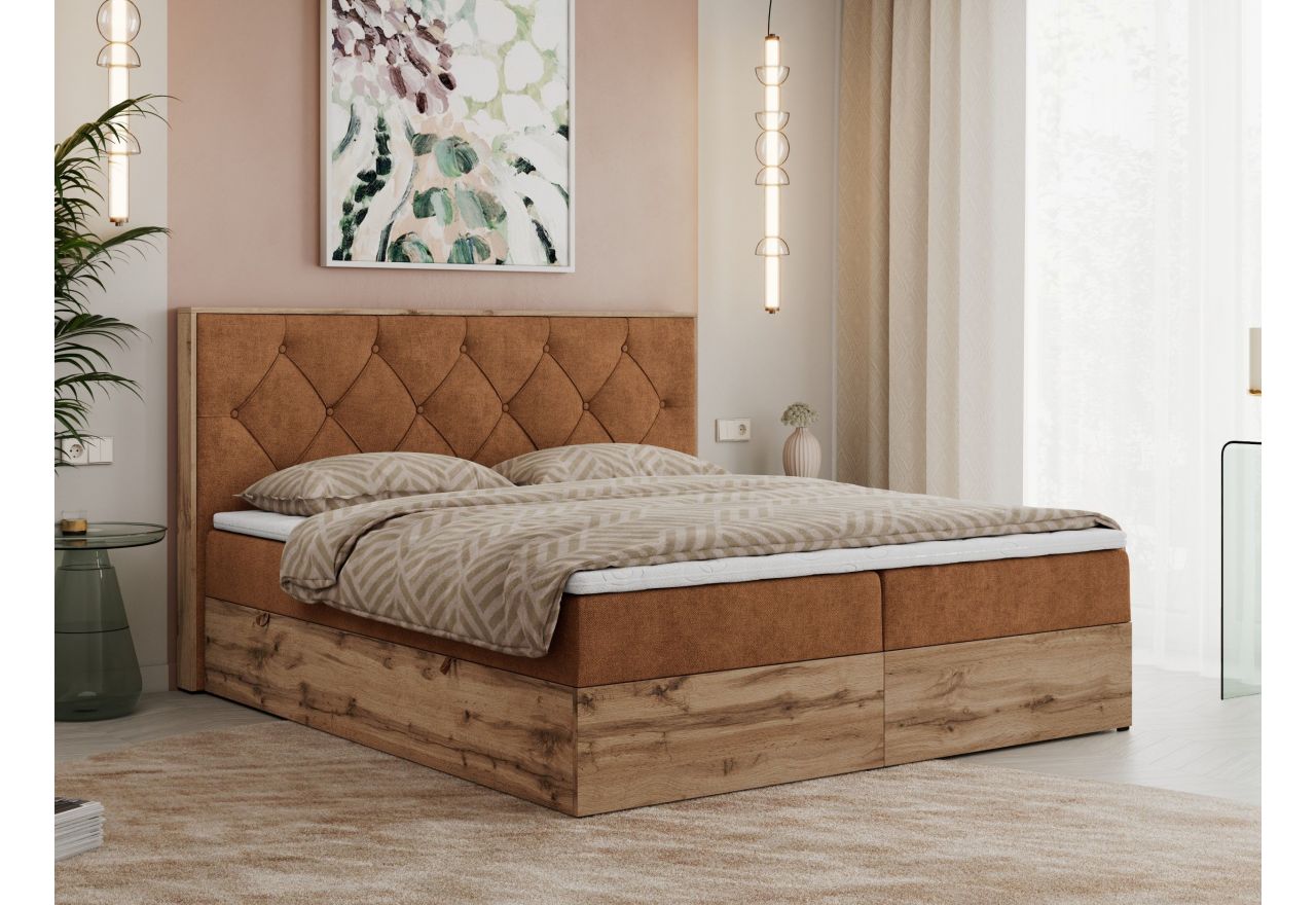 Główny materac kieszeniowy Multipocket dostarcza doskonałego wsparcia dla ciała, dzięki wysokoelastycznej piance T-30 co jest kluczowe dla zdrowego snu. Jego konstrukcja z niezależnymi kieszeniami minimalizuje przenoszenie ruchu. Dodatkowo, materac nawierzchniowy wykończony pianką T-25 zapewnia uczucie miękkości i komfortu, dostosowując się do kształtu ciała. Dwa pojemniki na pościel to praktyczne rozwiązanie, które pozwoli na łatwe przechowywanie pościeli i utrzymanie porządku. Automat na sprężynach sprawia, że otwieranie pojemników jest wygodne i szybkie. Łóżko kontynentalne posiada drewniane wykończenie na skrzyni oraz ramie wezgłowia. Dodaje wnętrzu ciepła i stylu, a nowoczesny design sprawia, że idealnie wpisuje się w różnorodne aranżacje.