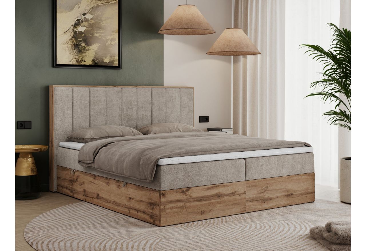 Główny materac kieszeniowy Multipocket dostarcza doskonałego wsparcia dla ciała, dzięki wysokoelastycznej piance T-30 co jest kluczowe dla zdrowego snu. Jego konstrukcja z niezależnymi kieszeniami minimalizuje przenoszenie ruchu. Dodatkowo, materac nawierzchniowy wykończony pianką T-25 zapewnia uczucie miękkości i komfortu, dostosowując się do kształtu ciała. Dwa pojemniki na pościel to praktyczne rozwiązanie, które pozwoli na łatwe przechowywanie pościeli i utrzymanie porządku. Automat na sprężynach sprawia, że otwieranie pojemników jest wygodne i szybkie. Łóżko kontynentalne posiada drewniane wykończenie na skrzyni oraz ramie wezgłowia. Dodaje wnętrzu ciepła i stylu, a nowoczesny design sprawia, że idealnie wpisuje się w różnorodne aranżacje.