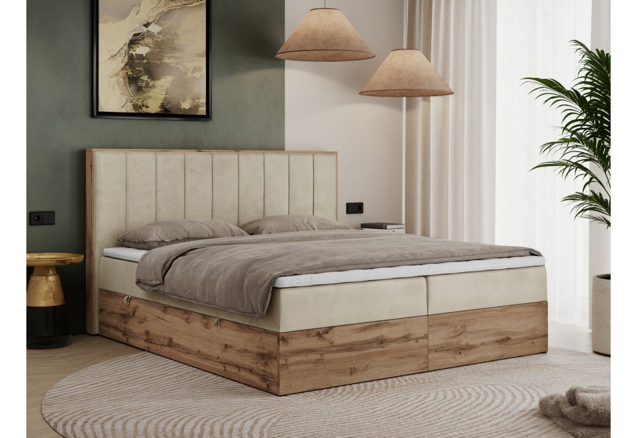 Główny materac kieszeniowy Multipocket dostarcza doskonałego wsparcia dla ciała, dzięki wysokoelastycznej piance T-30 co jest kluczowe dla zdrowego snu. Jego konstrukcja z niezależnymi kieszeniami minimalizuje przenoszenie ruchu. Dodatkowo, materac nawierzchniowy wykończony pianką T-25 zapewnia uczucie miękkości i komfortu, dostosowując się do kształtu ciała. Dwa pojemniki na pościel to praktyczne rozwiązanie, które pozwoli na łatwe przechowywanie pościeli i utrzymanie porządku. Automat na sprężynach sprawia, że otwieranie pojemników jest wygodne i szybkie. Łóżko kontynentalne posiada drewniane wykończenie na skrzyni oraz ramie wezgłowia. Dodaje wnętrzu ciepła i stylu, a nowoczesny design sprawia, że idealnie wpisuje się w różnorodne aranżacje.