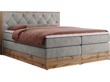 Łóżko wykonane zostało z trwałych materiałów – połączenia litego drewna i wysokiej jakości płyt meblowych, co zapewnia stabilność i długowieczność. To inwestycja w zdrowy sen i piękno Twojej sypialni.
