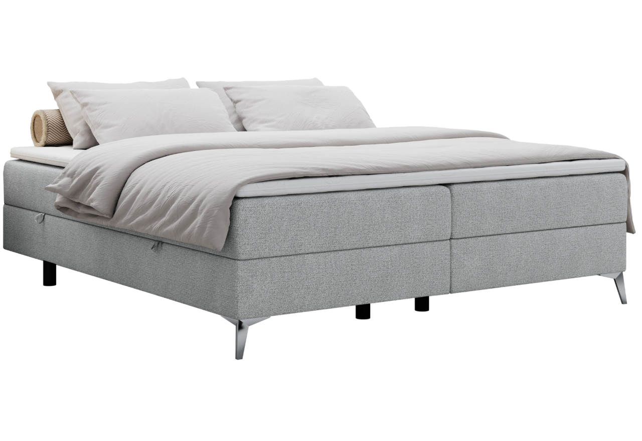 Główny materac kieszeniowy Multipocket dostarcza doskonałego wsparcia dla ciała, dzięki wysokoelastycznej piance T-30 co jest kluczowe dla zdrowego snu. Jego konstrukcja z niezależnymi kieszeniami minimalizuje przenoszenie ruchu. Dodatkowo, materac nawierzchniowy wykończony pianką T-25 zapewnia uczucie miękkości i komfortu, dostosowując się do kształtu ciała. Dwa pojemniki na pościel to praktyczne rozwiązanie, które pozwoli na łatwe przechowywanie pościeli i utrzymanie porządku. Automat na sprężynach sprawia, że otwieranie pojemników jest wygodne i szybkie. Łóżko nie posiada wezgłowia.