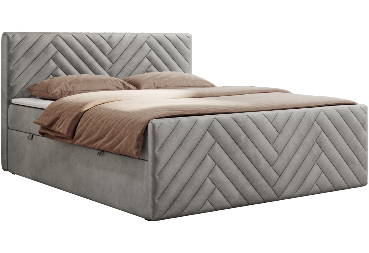 Elegancja spotyka funkcjonalność – łóżko kontynentalne PARIS DUO to połączenie nowoczesnego designu i wygody, które podkreśli luksusowy charakter każdej sypialni. Stylowe, tapicerowane wezgłowie z efektownym pikowaniem w jodełkę przyciąga wzrok i nadaje wnętrzu wyjątkowy charakter. Kontynuacja dekoracyjnego wzoru na froncie sprawia, że całość prezentuje się harmonijnie i ekskluzywnie. Solidna konstrukcja z drewnianej ramy i płyt meblowych zapewnia trwałość oraz stabilność, czyniąc ten model idealnym wyborem na lata.