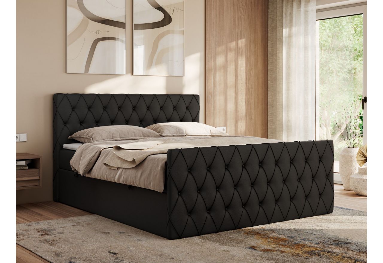 Główny materac kieszeniowy Multipocket dostarcza doskonałego wsparcia dla ciała, dzięki wysokoelastycznej piance T-30 co jest kluczowe dla zdrowego snu. Jego konstrukcja z niezależnymi kieszeniami minimalizuje przenoszenie ruchu. Dodatkowo, materac nawierzchniowy wykończony pianką T-25 zapewnia uczucie miękkości i komfortu, dostosowując się do kształtu ciała. Dwa pojemniki na pościel to praktyczne rozwiązanie, które pozwoli na łatwe przechowywanie pościeli i utrzymanie porządku. Automat na sprężynach sprawia, że otwieranie pojemników jest wygodne i szybkie. Tapicerowany zagłówek oraz zanóżek to prawdziwa ozdoba, która dodaje wnętrzu klasy i staje się centralnym punktem każdej sypialni.