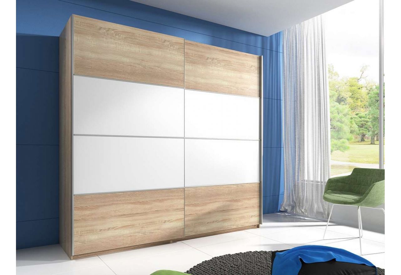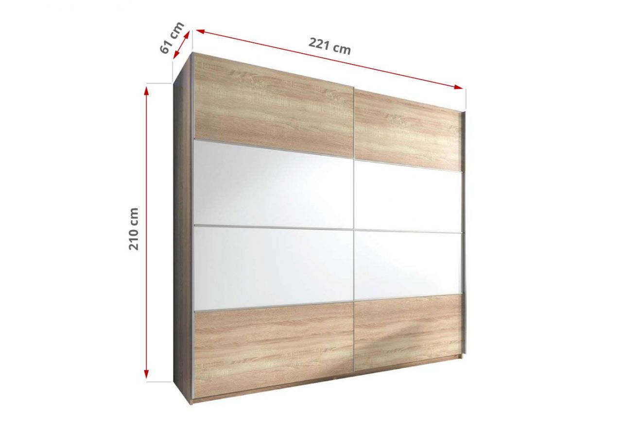 Pojemna i nowoczesna szafa przesuwna 221 cm szerokości do sypialni - JOTA Dąb Sonoma jasny - Biały / Dąb Sonoma jasny