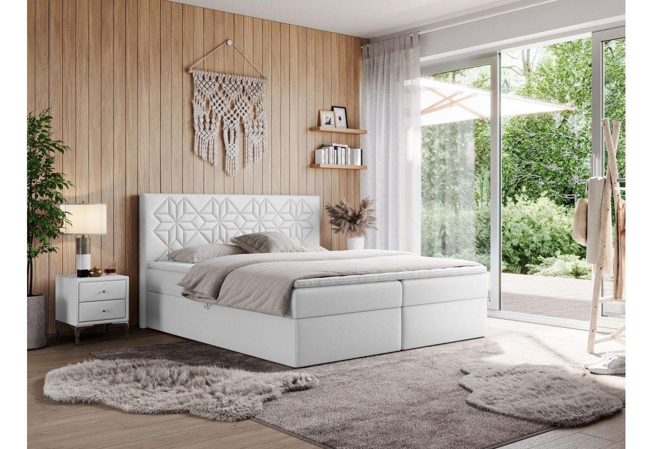 Główny materac kieszeniowy Multipocket dostarcza doskonałego wsparcia dla ciała, dzięki wysokoelastycznej piance T-30 co jest kluczowe dla zdrowego snu. Jego konstrukcja z niezależnymi kieszeniami minimalizuje przenoszenie ruchu. Dodatkowo, materac nawierzchniowy wykończony pianką T-25 zapewnia uczucie miękkości i komfortu, dostosowując się do kształtu ciała. Dwa pojemniki na pościel to praktyczne rozwiązanie, które pozwoli na łatwe przechowywanie pościeli i utrzymanie porządku. Automat na sprężynach sprawia, że otwieranie pojemników jest wygodne i szybkie. Tapicerowany zagłówek to prawdziwa ozdoba, która dodaje wnętrzu klasy i staje się centralnym punktem każdej sypialni.