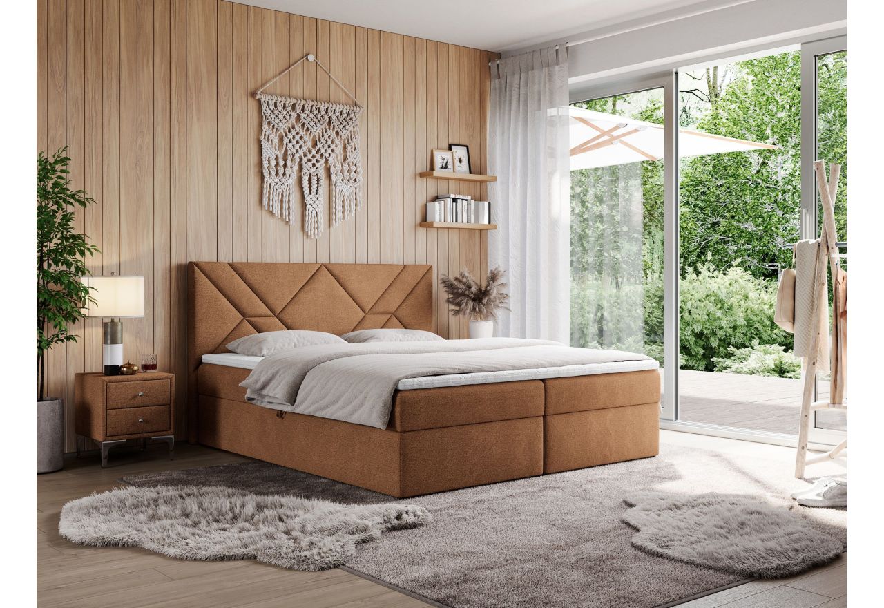 Główny materac kieszeniowy Multipocket dostarcza doskonałego wsparcia dla ciała, dzięki wysokoelastycznej piance T-30 co jest kluczowe dla zdrowego snu. Jego konstrukcja z niezależnymi kieszeniami minimalizuje przenoszenie ruchu. Dodatkowo, materac nawierzchniowy wykończony pianką T-25 zapewnia uczucie miękkości i komfortu, dostosowując się do kształtu ciała. Dwa pojemniki na pościel to praktyczne rozwiązanie, które pozwoli na łatwe przechowywanie pościeli i utrzymanie porządku. Automat na sprężynach sprawia, że otwieranie pojemników jest wygodne i szybkie. Tapicerowany zagłówek to prawdziwa ozdoba, która dodaje wnętrzu klasy i staje się centralnym punktem każdej sypialni.