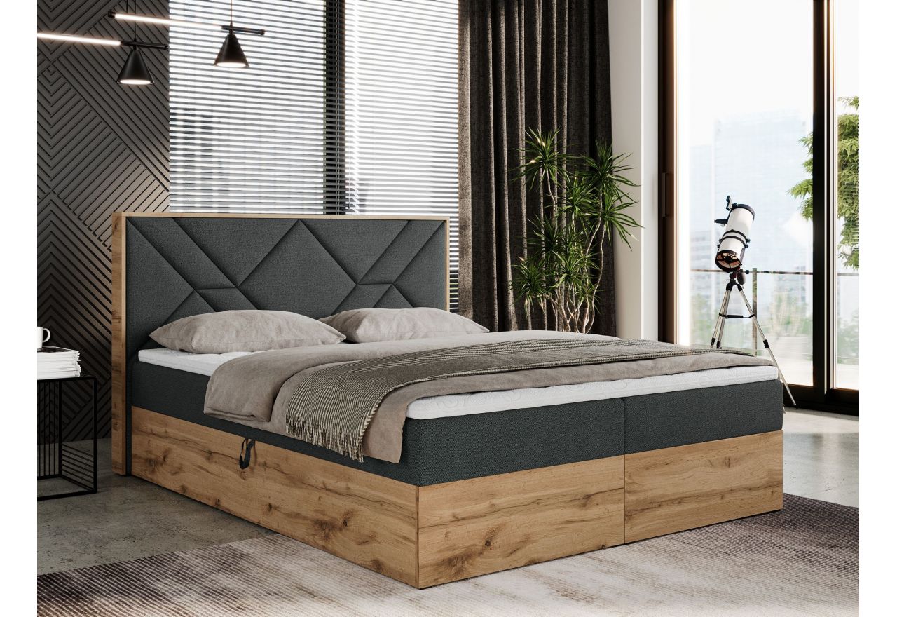 Główny materac kieszeniowy Multipocket dostarcza doskonałego wsparcia dla ciała, dzięki wysokoelastycznej piance T-30 co jest kluczowe dla zdrowego snu. Jego konstrukcja z niezależnymi kieszeniami minimalizuje przenoszenie ruchu. Dodatkowo, materac nawierzchniowy wykończony pianką T-25 zapewnia uczucie miękkości i komfortu, dostosowując się do kształtu ciała. Dwa pojemniki na pościel to praktyczne rozwiązanie, które pozwoli na łatwe przechowywanie pościeli i utrzymanie porządku. Automat na sprężynach sprawia, że otwieranie pojemników jest wygodne i szybkie. Tapicerowany zagłówek to prawdziwa ozdoba, która dodaje wnętrzu klasy i staje się centralnym punktem każdej sypialni. Łóżko kontynentalne posiada drewniane wykończenie na skrzyni oraz ramie wezgłowia. Dodaje wnętrzu ciepła i stylu, a nowoczesny design sprawia, że idealnie wpisuje się w różnorodne aranżacje.