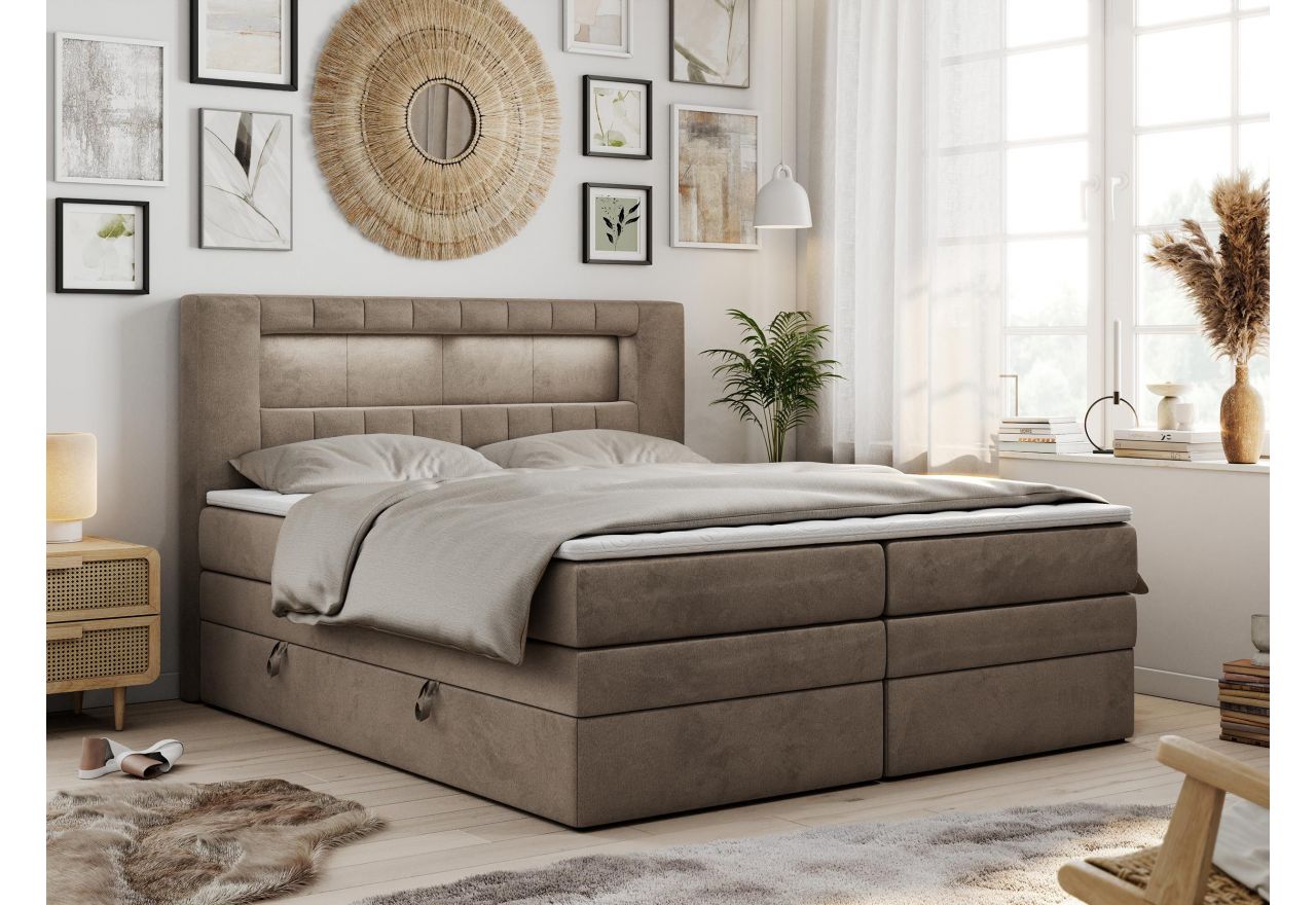 Główny materac kieszeniowy Multipocket dostarcza doskonałego wsparcia dla ciała, dzięki wysokoelastycznej piance T-30 co jest kluczowe dla zdrowego snu. Jego konstrukcja z niezależnymi kieszeniami minimalizuje przenoszenie ruchu. Dodatkowo, materac nawierzchniowy wykończony pianką T-25 zapewnia uczucie miękkości i komfortu, dostosowując się do kształtu ciała. Łóżko wyposażone w 2 poziomy materacy to rozwiązanie podnoszące znacząco komfort snu. Dwa pojemniki na pościel to praktyczne rozwiązanie, które pozwoli na łatwe przechowywanie pościeli i utrzymanie porządku. Automat na podnośnikach gazowych sprawia, że otwieranie pojemników jest wygodne i szybkie. Tapicerowany zagłówek to prawdziwa ozdoba, która dodaje wnętrzu klasy i staje się centralnym punktem każdej sypialni. W wezgłowiu znajduje się praktyczna wnęka z oświetleniem LED.