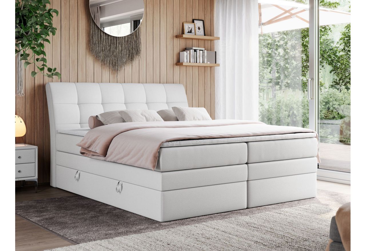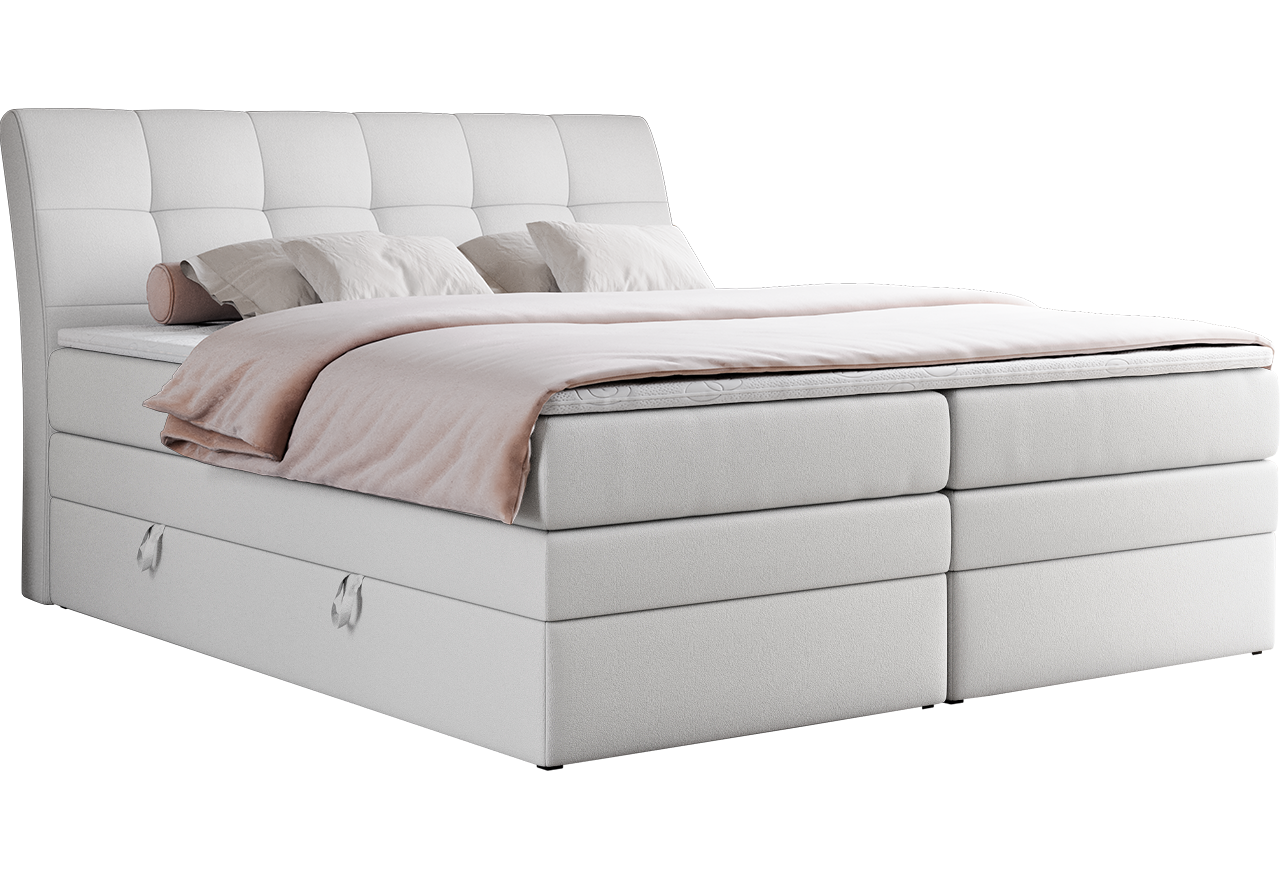 Główny materac kieszeniowy Multipocket dostarcza doskonałego wsparcia dla ciała, dzięki wysokoelastycznej piance T-30 co jest kluczowe dla zdrowego snu. Jego konstrukcja z niezależnymi kieszeniami minimalizuje przenoszenie ruchu. Dodatkowo, materac nawierzchniowy wykończony pianką T-25 zapewnia uczucie miękkości i komfortu, dostosowując się do kształtu ciała. Łóżko wyposażone w 2 poziomy materacy to rozwiązanie podnoszące znacząco komfort snu. Dwa pojemniki na pościel to praktyczne rozwiązanie, które pozwoli na łatwe przechowywanie pościeli i utrzymanie porządku. Automat na podnośnikach gazowych sprawia, że otwieranie pojemników jest wygodne i szybkie. Tapicerowany zagłówek to prawdziwa ozdoba, która dodaje wnętrzu klasy i staje się centralnym punktem każdej sypialni.