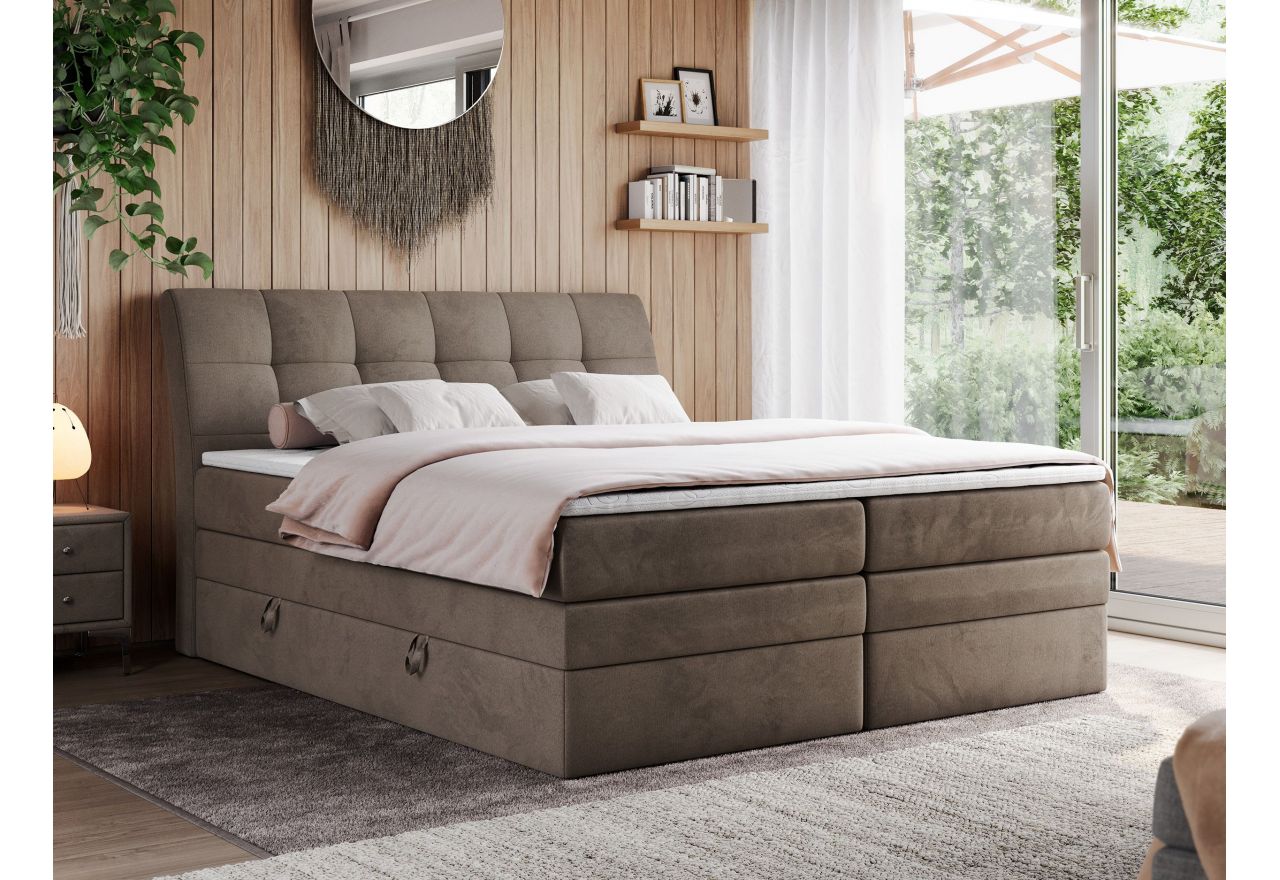 Główny materac kieszeniowy Multipocket dostarcza doskonałego wsparcia dla ciała, dzięki wysokoelastycznej piance T-30 co jest kluczowe dla zdrowego snu. Jego konstrukcja z niezależnymi kieszeniami minimalizuje przenoszenie ruchu. Dodatkowo, materac nawierzchniowy wykończony pianką T-25 zapewnia uczucie miękkości i komfortu, dostosowując się do kształtu ciała. Łóżko wyposażone w 2 poziomy materacy to rozwiązanie podnoszące znacząco komfort snu. Dwa pojemniki na pościel to praktyczne rozwiązanie, które pozwoli na łatwe przechowywanie pościeli i utrzymanie porządku. Automat na podnośnikach gazowych sprawia, że otwieranie pojemników jest wygodne i szybkie. Tapicerowany zagłówek to prawdziwa ozdoba, która dodaje wnętrzu klasy i staje się centralnym punktem każdej sypialni.
