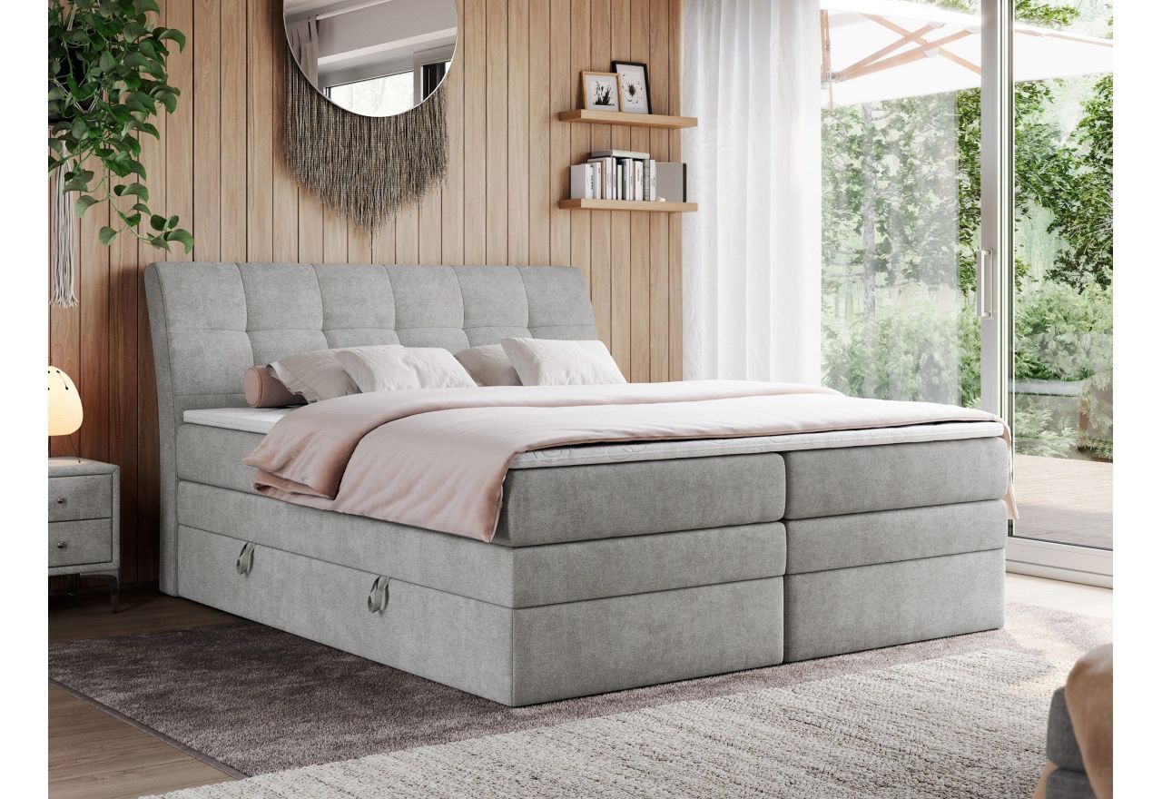Główny materac kieszeniowy Multipocket dostarcza doskonałego wsparcia dla ciała, dzięki wysokoelastycznej piance T-30 co jest kluczowe dla zdrowego snu. Jego konstrukcja z niezależnymi kieszeniami minimalizuje przenoszenie ruchu. Dodatkowo, materac nawierzchniowy wykończony pianką T-25 zapewnia uczucie miękkości i komfortu, dostosowując się do kształtu ciała. Łóżko wyposażone w 2 poziomy materacy to rozwiązanie podnoszące znacząco komfort snu. Dwa pojemniki na pościel to praktyczne rozwiązanie, które pozwoli na łatwe przechowywanie pościeli i utrzymanie porządku. Automat na podnośnikach gazowych sprawia, że otwieranie pojemników jest wygodne i szybkie. Tapicerowany zagłówek to prawdziwa ozdoba, która dodaje wnętrzu klasy i staje się centralnym punktem każdej sypialni.