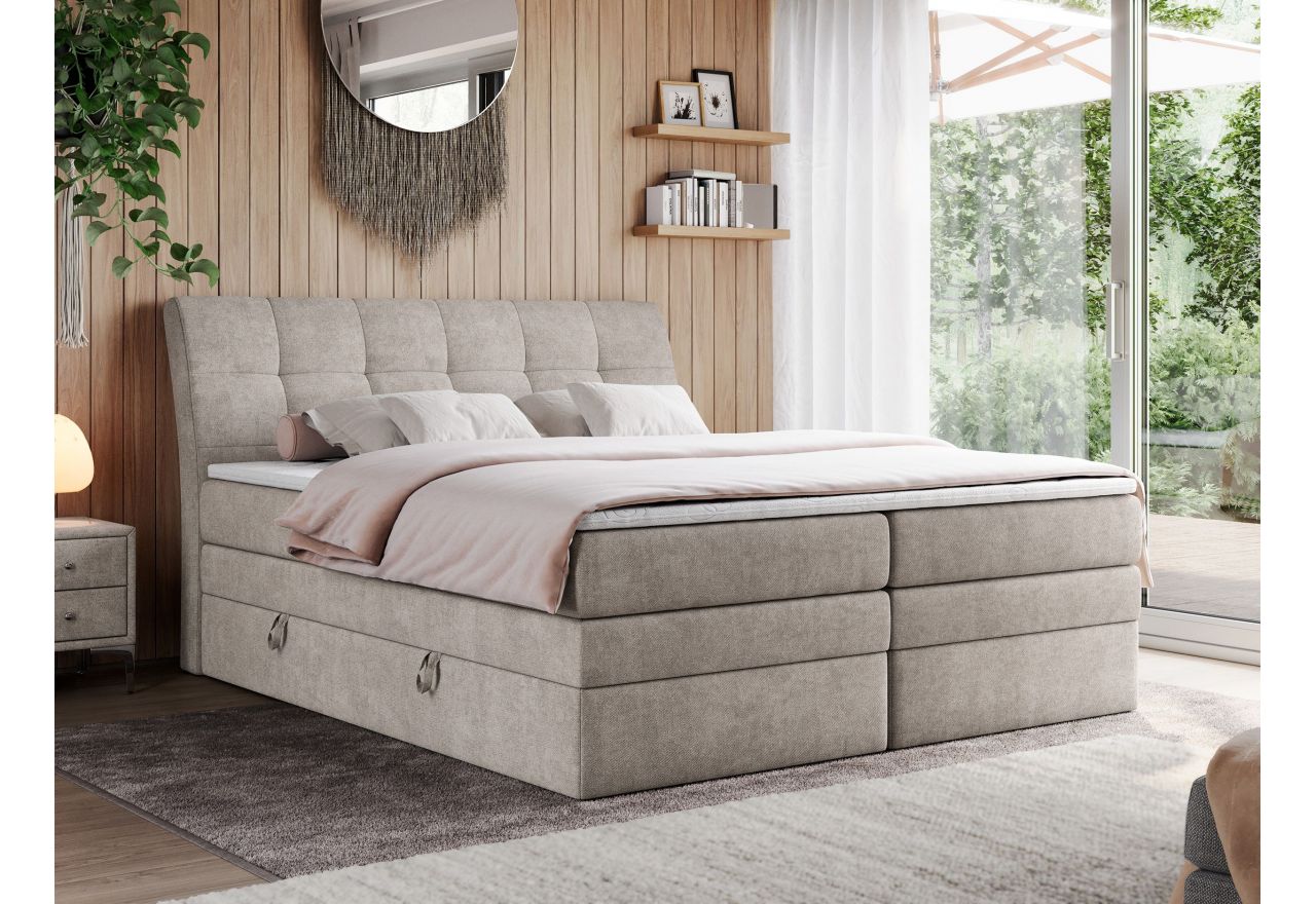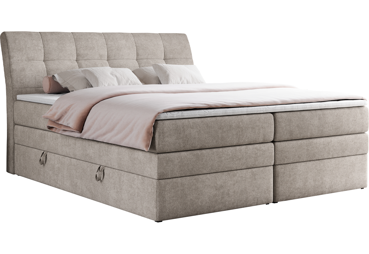 Główny materac kieszeniowy Multipocket dostarcza doskonałego wsparcia dla ciała, dzięki wysokoelastycznej piance T-30 co jest kluczowe dla zdrowego snu. Jego konstrukcja z niezależnymi kieszeniami minimalizuje przenoszenie ruchu. Dodatkowo, materac nawierzchniowy wykończony pianką T-25 zapewnia uczucie miękkości i komfortu, dostosowując się do kształtu ciała. Łóżko wyposażone w 2 poziomy materacy to rozwiązanie podnoszące znacząco komfort snu. Dwa pojemniki na pościel to praktyczne rozwiązanie, które pozwoli na łatwe przechowywanie pościeli i utrzymanie porządku. Automat na podnośnikach gazowych sprawia, że otwieranie pojemników jest wygodne i szybkie. Tapicerowany zagłówek to prawdziwa ozdoba, która dodaje wnętrzu klasy i staje się centralnym punktem każdej sypialni.