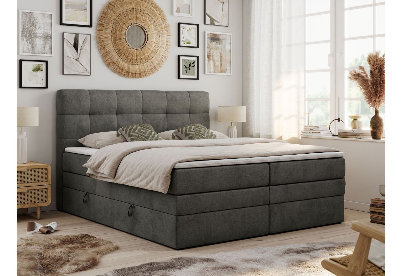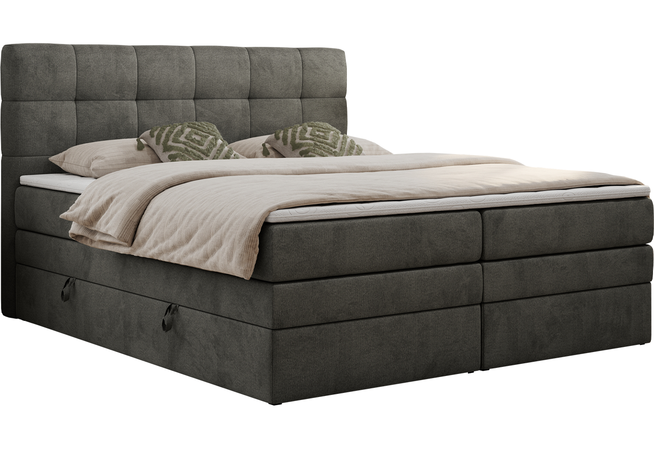 Główny materac kieszeniowy Multipocket dostarcza doskonałego wsparcia dla ciała, dzięki wysokoelastycznej piance T-30 co jest kluczowe dla zdrowego snu. Jego konstrukcja z niezależnymi kieszeniami minimalizuje przenoszenie ruchu. Dodatkowo, materac nawierzchniowy wykończony pianką T-25 zapewnia uczucie miękkości i komfortu, dostosowując się do kształtu ciała. Łóżko wyposażone w 2 poziomy materacy to rozwiązanie podnoszące znacząco komfort snu. Dwa pojemniki na pościel to praktyczne rozwiązanie, które pozwoli na łatwe przechowywanie pościeli i utrzymanie porządku. Automat na podnośnikach gazowych sprawia, że otwieranie pojemników jest wygodne i szybkie. Tapicerowany zagłówek to prawdziwa ozdoba, która dodaje wnętrzu klasy i staje się centralnym punktem każdej sypialni.