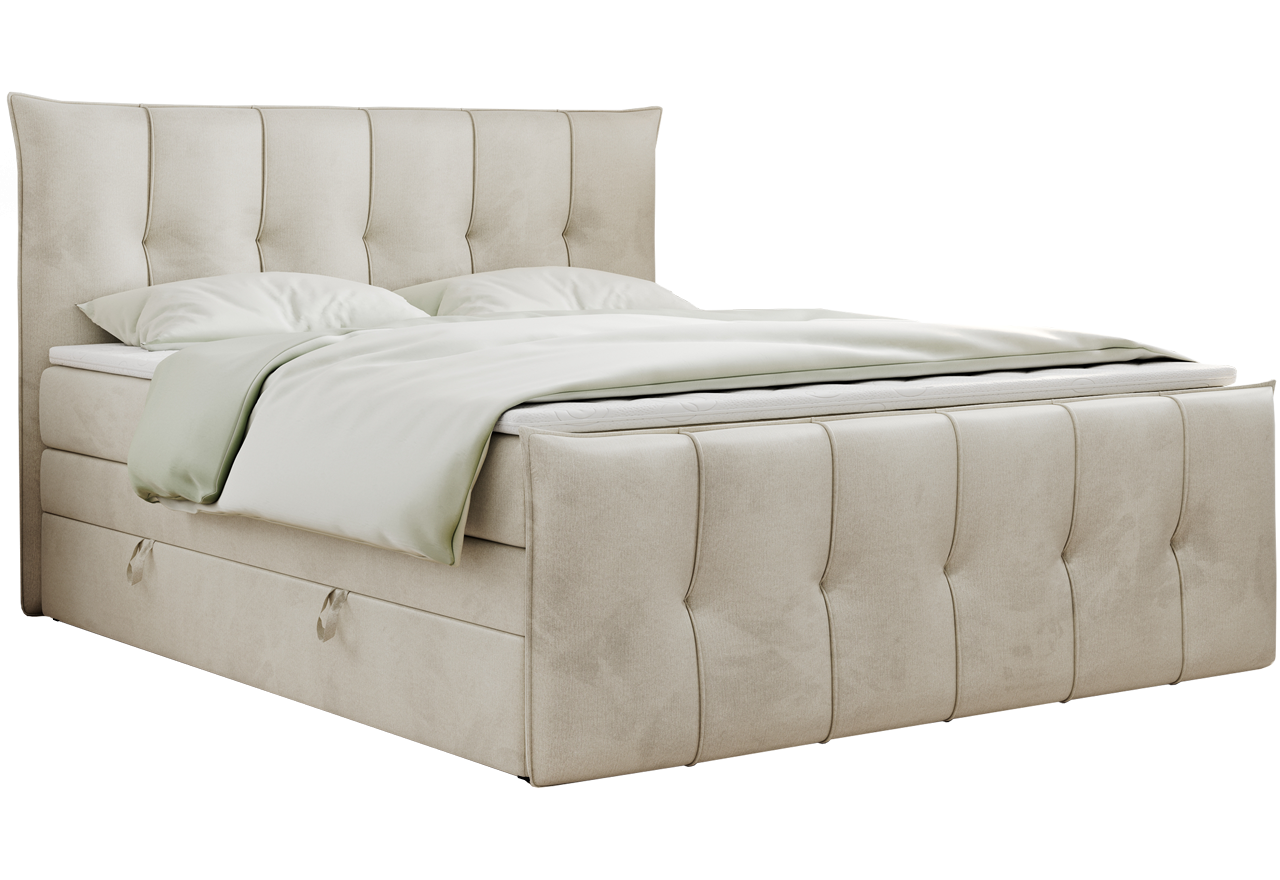 Główny materac kieszeniowy Multipocket dostarcza doskonałego wsparcia dla ciała, dzięki wysokoelastycznej piance T-30 co jest kluczowe dla zdrowego snu. Jego konstrukcja z niezależnymi kieszeniami minimalizuje przenoszenie ruchu. Dodatkowo, materac nawierzchniowy wykończony pianką T-25 zapewnia uczucie miękkości i komfortu, dostosowując się do kształtu ciała. Łóżko wyposażone w 2 poziomy materacy to rozwiązanie podnoszące znacząco komfort snu. Dwa pojemniki na pościel to praktyczne rozwiązanie, które pozwoli na łatwe przechowywanie pościeli i utrzymanie porządku. Automat na sprężynach sprawia, że otwieranie pojemników jest wygodne i szybkie.