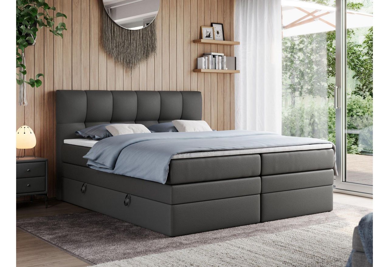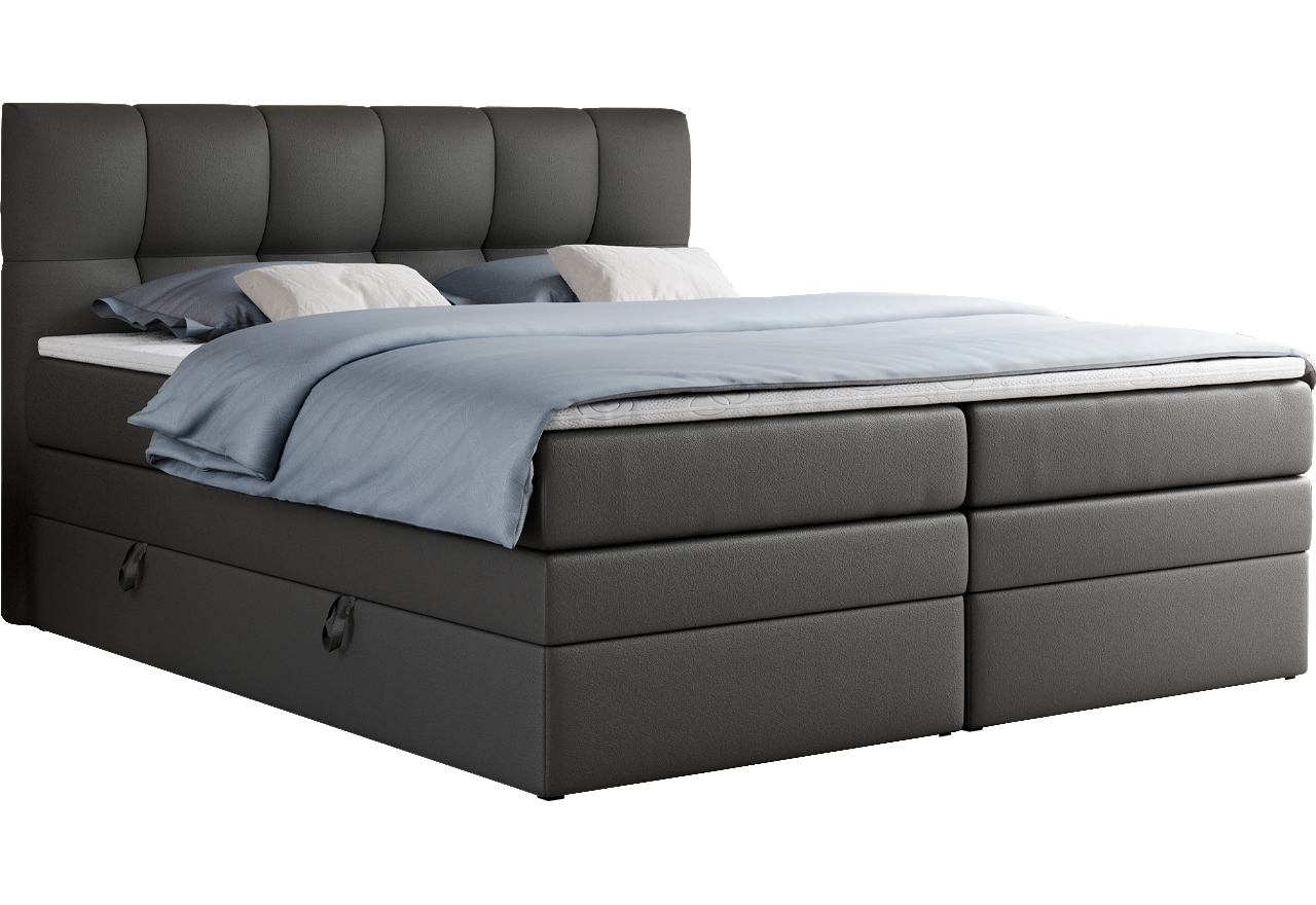 Główny materac kieszeniowy Multipocket dostarcza doskonałego wsparcia dla ciała, dzięki wysokoelastycznej piance T-30 co jest kluczowe dla zdrowego snu. Jego konstrukcja z niezależnymi kieszeniami minimalizuje przenoszenie ruchu. Dodatkowo, materac nawierzchniowy wykończony pianką T-25 zapewnia uczucie miękkości i komfortu, dostosowując się do kształtu ciała. Łóżko wyposażone w 2 poziomy materacy to rozwiązanie podnoszące znacząco komfort snu. Dwa pojemniki na pościel to praktyczne rozwiązanie, które pozwoli na łatwe przechowywanie pościeli i utrzymanie porządku. Automat na sprężynach sprawia, że otwieranie pojemników jest wygodne i szybkie. Tapicerowany, pikowany zagłówek to prawdziwa ozdoba, która dodaje wnętrzu klasy i staje się centralnym punktem każdej sypialni.