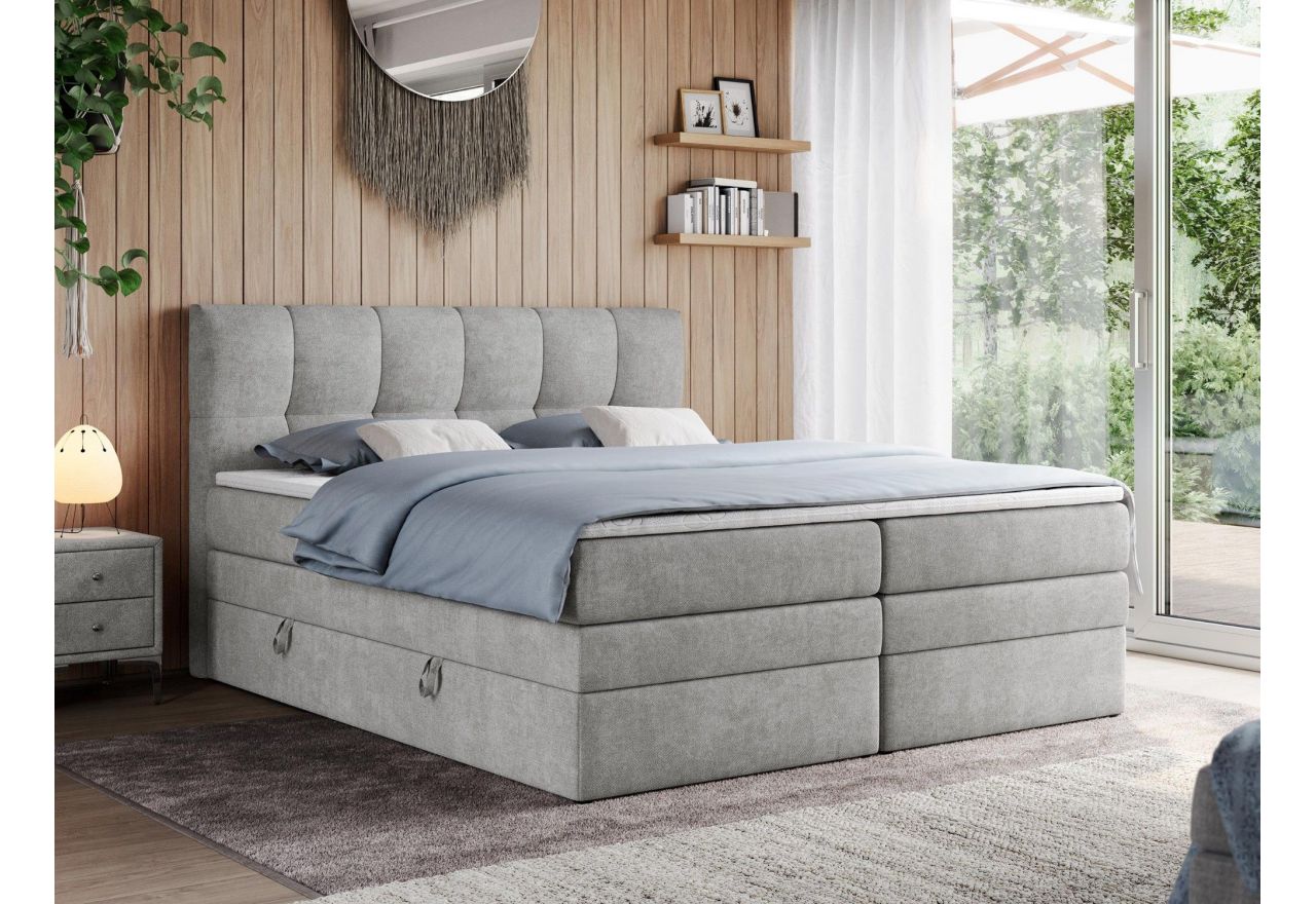 Główny materac kieszeniowy Multipocket dostarcza doskonałego wsparcia dla ciała, dzięki wysokoelastycznej piance T-30 co jest kluczowe dla zdrowego snu. Jego konstrukcja z niezależnymi kieszeniami minimalizuje przenoszenie ruchu. Dodatkowo, materac nawierzchniowy wykończony pianką T-25 zapewnia uczucie miękkości i komfortu, dostosowując się do kształtu ciała. Łóżko wyposażone w 2 poziomy materacy to rozwiązanie podnoszące znacząco komfort snu. Dwa pojemniki na pościel to praktyczne rozwiązanie, które pozwoli na łatwe przechowywanie pościeli i utrzymanie porządku. Automat na sprężynach sprawia, że otwieranie pojemników jest wygodne i szybkie. Tapicerowany, pikowany zagłówek to prawdziwa ozdoba, która dodaje wnętrzu klasy i staje się centralnym punktem każdej sypialni.