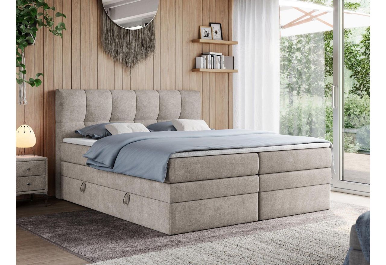 Główny materac kieszeniowy Multipocket dostarcza doskonałego wsparcia dla ciała, dzięki wysokoelastycznej piance T-30 co jest kluczowe dla zdrowego snu. Jego konstrukcja z niezależnymi kieszeniami minimalizuje przenoszenie ruchu. Dodatkowo, materac nawierzchniowy wykończony pianką T-25 zapewnia uczucie miękkości i komfortu, dostosowując się do kształtu ciała. Łóżko wyposażone w 2 poziomy materacy to rozwiązanie podnoszące znacząco komfort snu. Dwa pojemniki na pościel to praktyczne rozwiązanie, które pozwoli na łatwe przechowywanie pościeli i utrzymanie porządku. Automat na sprężynach sprawia, że otwieranie pojemników jest wygodne i szybkie. Tapicerowany, pikowany zagłówek to prawdziwa ozdoba, która dodaje wnętrzu klasy i staje się centralnym punktem każdej sypialni.