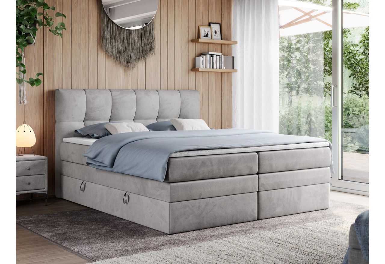 Główny materac kieszeniowy Multipocket dostarcza doskonałego wsparcia dla ciała, dzięki wysokoelastycznej piance T-30 co jest kluczowe dla zdrowego snu. Jego konstrukcja z niezależnymi kieszeniami minimalizuje przenoszenie ruchu. Dodatkowo, materac nawierzchniowy wykończony pianką T-25 zapewnia uczucie miękkości i komfortu, dostosowując się do kształtu ciała. Łóżko wyposażone w 2 poziomy materacy to rozwiązanie podnoszące znacząco komfort snu. Dwa pojemniki na pościel to praktyczne rozwiązanie, które pozwoli na łatwe przechowywanie pościeli i utrzymanie porządku. Automat na sprężynach sprawia, że otwieranie pojemników jest wygodne i szybkie. Tapicerowany, pikowany zagłówek to prawdziwa ozdoba, która dodaje wnętrzu klasy i staje się centralnym punktem każdej sypialni.