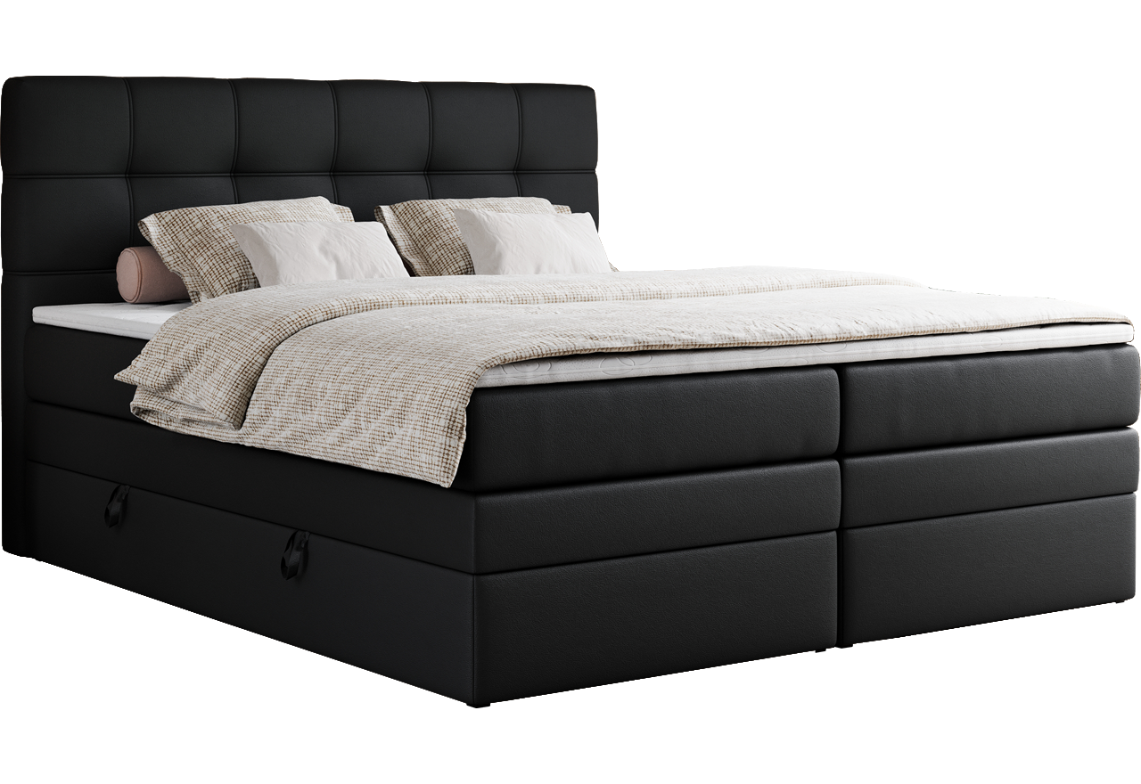 Główny materac kieszeniowy Multipocket dostarcza doskonałego wsparcia dla ciała, dzięki wysokoelastycznej piance T-30 co jest kluczowe dla zdrowego snu. Jego konstrukcja z niezależnymi kieszeniami minimalizuje przenoszenie ruchu. Dodatkowo, materac nawierzchniowy wykończony pianką T-25 zapewnia uczucie miękkości i komfortu, dostosowując się do kształtu ciała. Łóżko wyposażone w 2 poziomy materacy to rozwiązanie podnoszące znacząco komfort snu. Dwa pojemniki na pościel to praktyczne rozwiązanie, które pozwoli na łatwe przechowywanie pościeli i utrzymanie porządku. Automat na sprężynach sprawia, że otwieranie pojemników jest wygodne i szybkie. Tapicerowany zagłówek to prawdziwa ozdoba, która dodaje wnętrzu klasy i staje się centralnym punktem każdej sypialni.