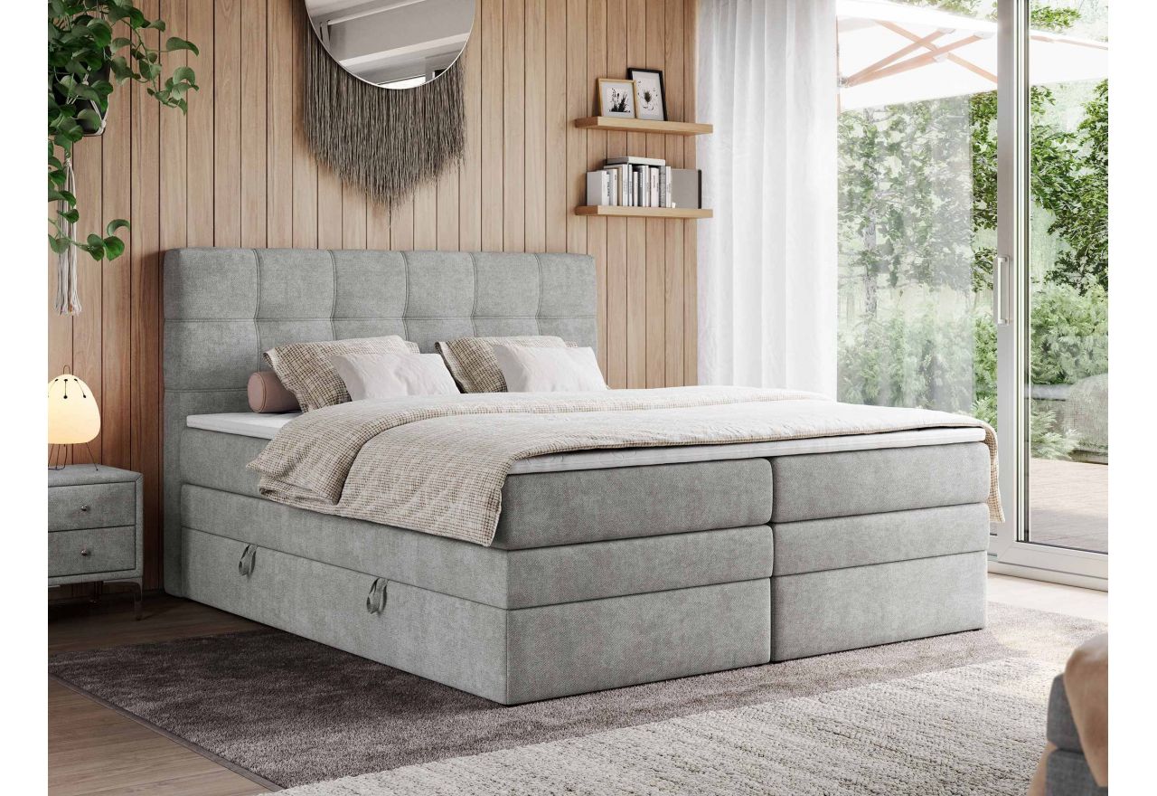 Główny materac kieszeniowy Multipocket dostarcza doskonałego wsparcia dla ciała, dzięki wysokoelastycznej piance T-30 co jest kluczowe dla zdrowego snu. Jego konstrukcja z niezależnymi kieszeniami minimalizuje przenoszenie ruchu. Dodatkowo, materac nawierzchniowy wykończony pianką T-25 zapewnia uczucie miękkości i komfortu, dostosowując się do kształtu ciała. Łóżko wyposażone w 2 poziomy materacy to rozwiązanie podnoszące znacząco komfort snu. Dwa pojemniki na pościel to praktyczne rozwiązanie, które pozwoli na łatwe przechowywanie pościeli i utrzymanie porządku. Automat na sprężynach sprawia, że otwieranie pojemników jest wygodne i szybkie. Tapicerowany zagłówek to prawdziwa ozdoba, która dodaje wnętrzu klasy i staje się centralnym punktem każdej sypialni.
