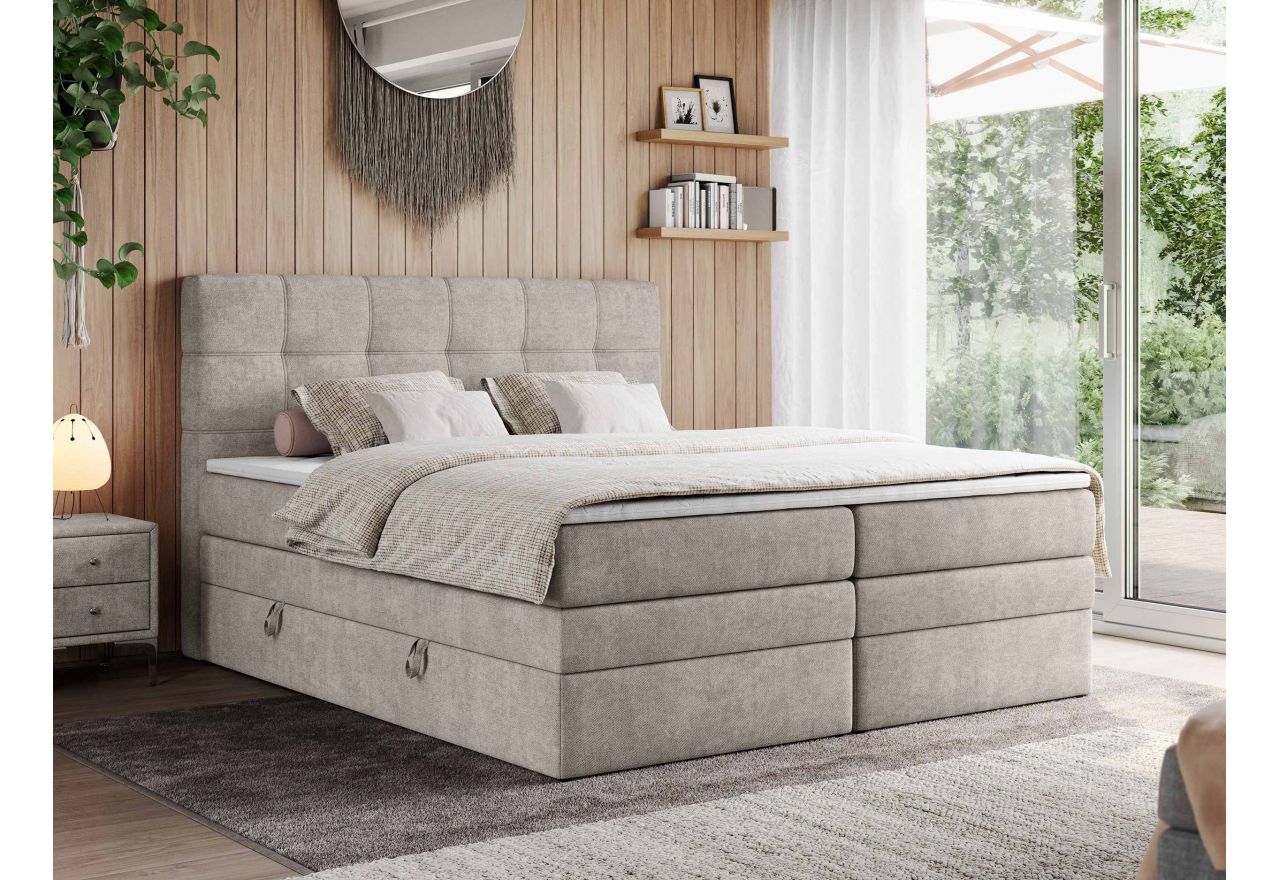 Główny materac kieszeniowy Multipocket dostarcza doskonałego wsparcia dla ciała, dzięki wysokoelastycznej piance T-30 co jest kluczowe dla zdrowego snu. Jego konstrukcja z niezależnymi kieszeniami minimalizuje przenoszenie ruchu. Dodatkowo, materac nawierzchniowy wykończony pianką T-25 zapewnia uczucie miękkości i komfortu, dostosowując się do kształtu ciała. Łóżko wyposażone w 2 poziomy materacy to rozwiązanie podnoszące znacząco komfort snu. Dwa pojemniki na pościel to praktyczne rozwiązanie, które pozwoli na łatwe przechowywanie pościeli i utrzymanie porządku. Automat na sprężynach sprawia, że otwieranie pojemników jest wygodne i szybkie. Tapicerowany zagłówek to prawdziwa ozdoba, która dodaje wnętrzu klasy i staje się centralnym punktem każdej sypialni.