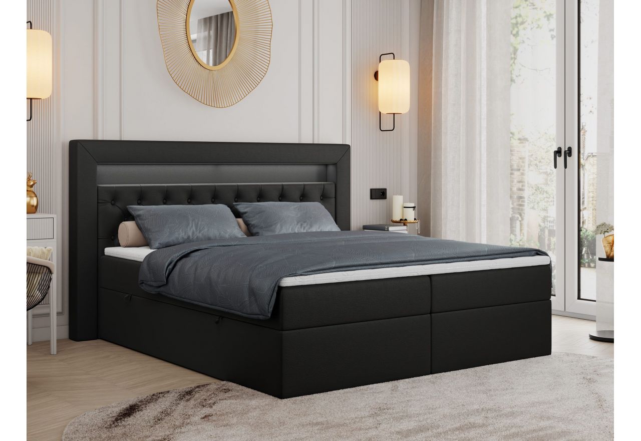 Główny materac kieszeniowy Multipocket dostarcza doskonałego wsparcia dla ciała, dzięki wysokoelastycznej piance T-30 co jest kluczowe dla zdrowego snu. Jego konstrukcja z niezależnymi kieszeniami minimalizuje przenoszenie ruchu. Dodatkowo, materac nawierzchniowy wykończony pianką T-25 zapewnia uczucie miękkości i komfortu, dostosowując się do kształtu ciała. Dwa pojemniki na pościel to praktyczne rozwiązanie, które pozwoli na łatwe przechowywanie pościeli i utrzymanie porządku. Automat na sprężynach sprawia, że otwieranie pojemników jest wygodne i szybkie. Tapicerowany, pikowany zagłówek to prawdziwa ozdoba, która dodaje wnętrzu klasy i staje się centralnym punktem każdej sypialni. W wezgłowiu znajduje się praktyczna wnęka z oświetleniem LED.