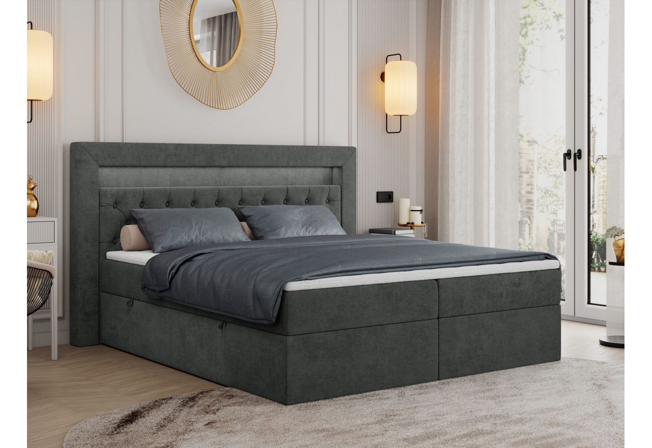 Główny materac kieszeniowy Multipocket dostarcza doskonałego wsparcia dla ciała, dzięki wysokoelastycznej piance T-30 co jest kluczowe dla zdrowego snu. Jego konstrukcja z niezależnymi kieszeniami minimalizuje przenoszenie ruchu. Dodatkowo, materac nawierzchniowy wykończony pianką T-25 zapewnia uczucie miękkości i komfortu, dostosowując się do kształtu ciała. Dwa pojemniki na pościel to praktyczne rozwiązanie, które pozwoli na łatwe przechowywanie pościeli i utrzymanie porządku. Automat na sprężynach sprawia, że otwieranie pojemników jest wygodne i szybkie. Tapicerowany, pikowany zagłówek to prawdziwa ozdoba, która dodaje wnętrzu klasy i staje się centralnym punktem każdej sypialni. W wezgłowiu znajduje się praktyczna wnęka z oświetleniem LED.