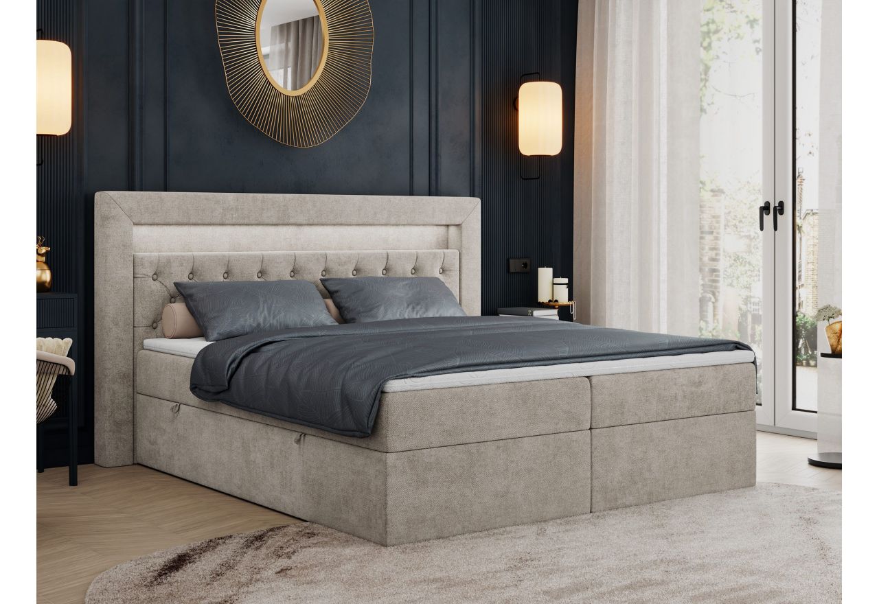 Główny materac kieszeniowy Multipocket dostarcza doskonałego wsparcia dla ciała, dzięki wysokoelastycznej piance T-30 co jest kluczowe dla zdrowego snu. Jego konstrukcja z niezależnymi kieszeniami minimalizuje przenoszenie ruchu. Dodatkowo, materac nawierzchniowy wykończony pianką T-25 zapewnia uczucie miękkości i komfortu, dostosowując się do kształtu ciała. Dwa pojemniki na pościel to praktyczne rozwiązanie, które pozwoli na łatwe przechowywanie pościeli i utrzymanie porządku. Automat na sprężynach sprawia, że otwieranie pojemników jest wygodne i szybkie. Tapicerowany, pikowany zagłówek to prawdziwa ozdoba, która dodaje wnętrzu klasy i staje się centralnym punktem każdej sypialni. W wezgłowiu znajduje się praktyczna wnęka z oświetleniem LED.