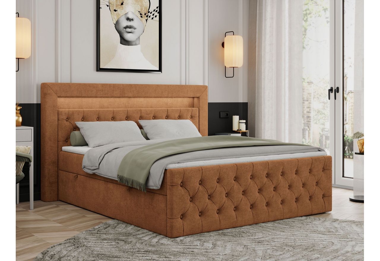 Główny materac kieszeniowy Multipocket dostarcza doskonałego wsparcia dla ciała, dzięki wysokoelastycznej piance T-30 co jest kluczowe dla zdrowego snu. Jego konstrukcja z niezależnymi kieszeniami minimalizuje przenoszenie ruchu. Dodatkowo, materac nawierzchniowy wykończony pianką T-25 zapewnia uczucie miękkości i komfortu, dostosowując się do kształtu ciała. Dwa pojemniki na pościel to praktyczne rozwiązanie, które pozwoli na łatwe przechowywanie pościeli i utrzymanie porządku. Automat na sprężynach sprawia, że otwieranie pojemników jest wygodne i szybkie. Tapicerowany, pikowany zagłówek to prawdziwa ozdoba, która dodaje wnętrzu klasy i staje się centralnym punktem każdej sypialni. W wezgłowiu znajduje się praktyczna wnęka z oświetleniem LED.