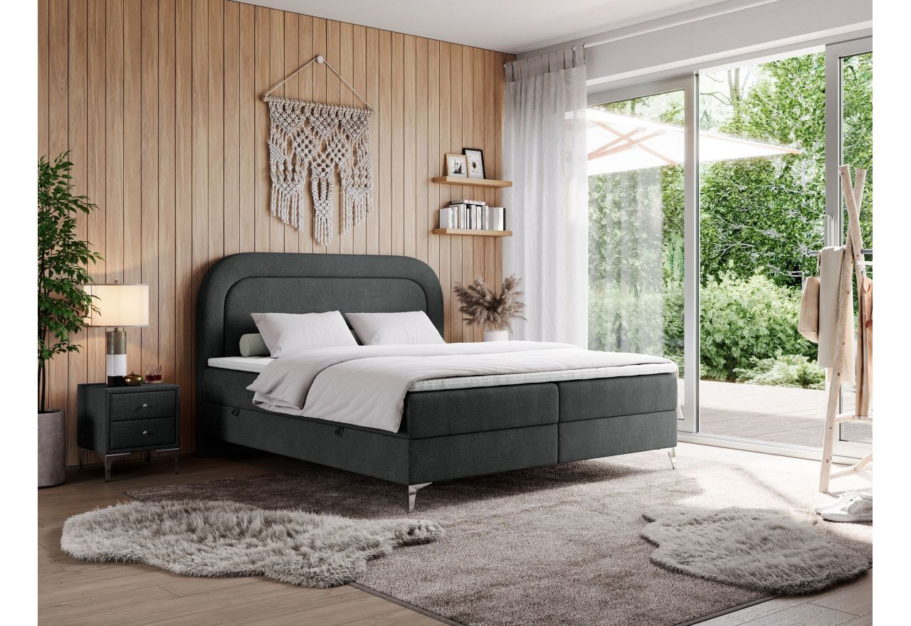 Główny materac kieszeniowy Multipocket dostarcza doskonałego wsparcia dla ciała, dzięki wysokoelastycznej piance T-30 co jest kluczowe dla zdrowego snu. Jego konstrukcja z niezależnymi kieszeniami minimalizuje przenoszenie ruchu. Dodatkowo, materac nawierzchniowy wykończony pianką T-25 zapewnia uczucie miękkości i komfortu, dostosowując się do kształtu ciała. Dwa pojemniki na pościel to praktyczne rozwiązanie, które pozwoli na łatwe przechowywanie pościeli i utrzymanie porządku. Automat na sprężynach sprawia, że otwieranie pojemników jest wygodne i szybkie. Tapicerowany zagłówek to prawdziwa ozdoba, która dodaje wnętrzu klasy i staje się centralnym punktem każdej sypialni.