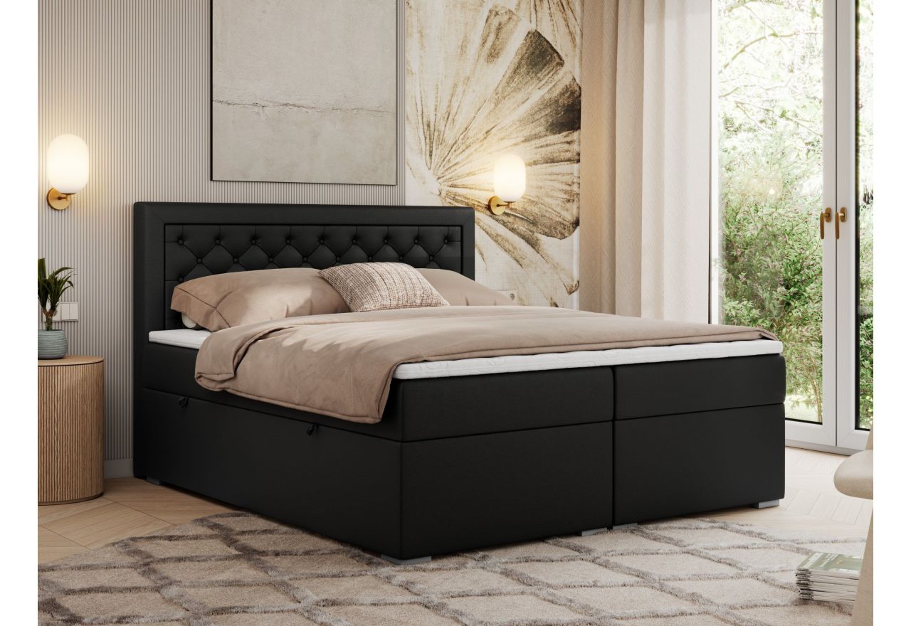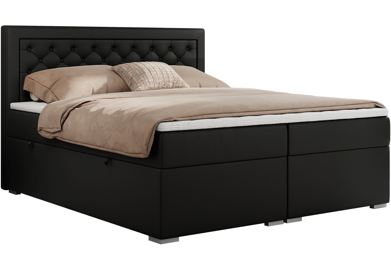 Główny materac kieszeniowy Multipocket dostarcza doskonałego wsparcia dla ciała, dzięki wysokoelastycznej piance T-30 co jest kluczowe dla zdrowego snu. Jego konstrukcja z niezależnymi kieszeniami minimalizuje przenoszenie ruchu. Dodatkowo, materac nawierzchniowy wykończony pianką T-25 zapewnia uczucie miękkości i komfortu, dostosowując się do kształtu ciała. Dwa pojemniki na pościel to praktyczne rozwiązanie, które pozwoli na łatwe przechowywanie pościeli i utrzymanie porządku. Automat na sprężynach sprawia, że otwieranie pojemników jest wygodne i szybkie. Tapicerowany zagłówek to prawdziwa ozdoba, która dodaje wnętrzu klasy i staje się centralnym punktem każdej sypialni.
