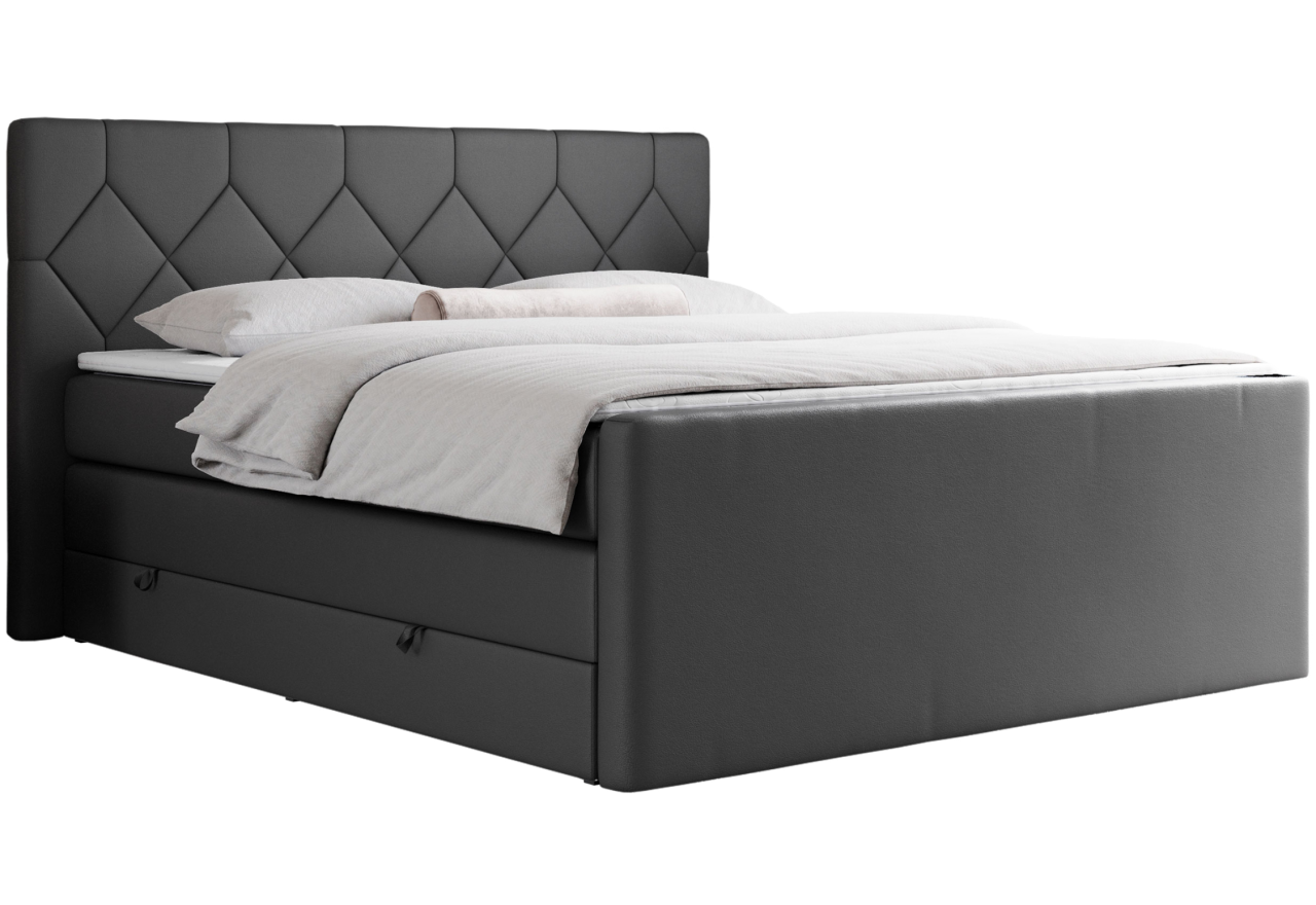 Główny materac kieszeniowy Multipocket dostarcza doskonałego wsparcia dla ciała, dzięki wysokoelastycznej piance T-30 co jest kluczowe dla zdrowego snu. Jego konstrukcja z niezależnymi kieszeniami minimalizuje przenoszenie ruchu. Dodatkowo, materac nawierzchniowy wykończony pianką T-25 zapewnia uczucie miękkości i komfortu, dostosowując się do kształtu ciała. Łóżko wyposażone w 2 poziomy materacy to rozwiązanie podnoszące znacząco komfort snu. Dwa pojemniki na pościel to praktyczne rozwiązanie, które pozwoli na łatwe przechowywanie pościeli i utrzymanie porządku. Automat na sprężynach sprawia, że otwieranie pojemników jest wygodne i szybkie.