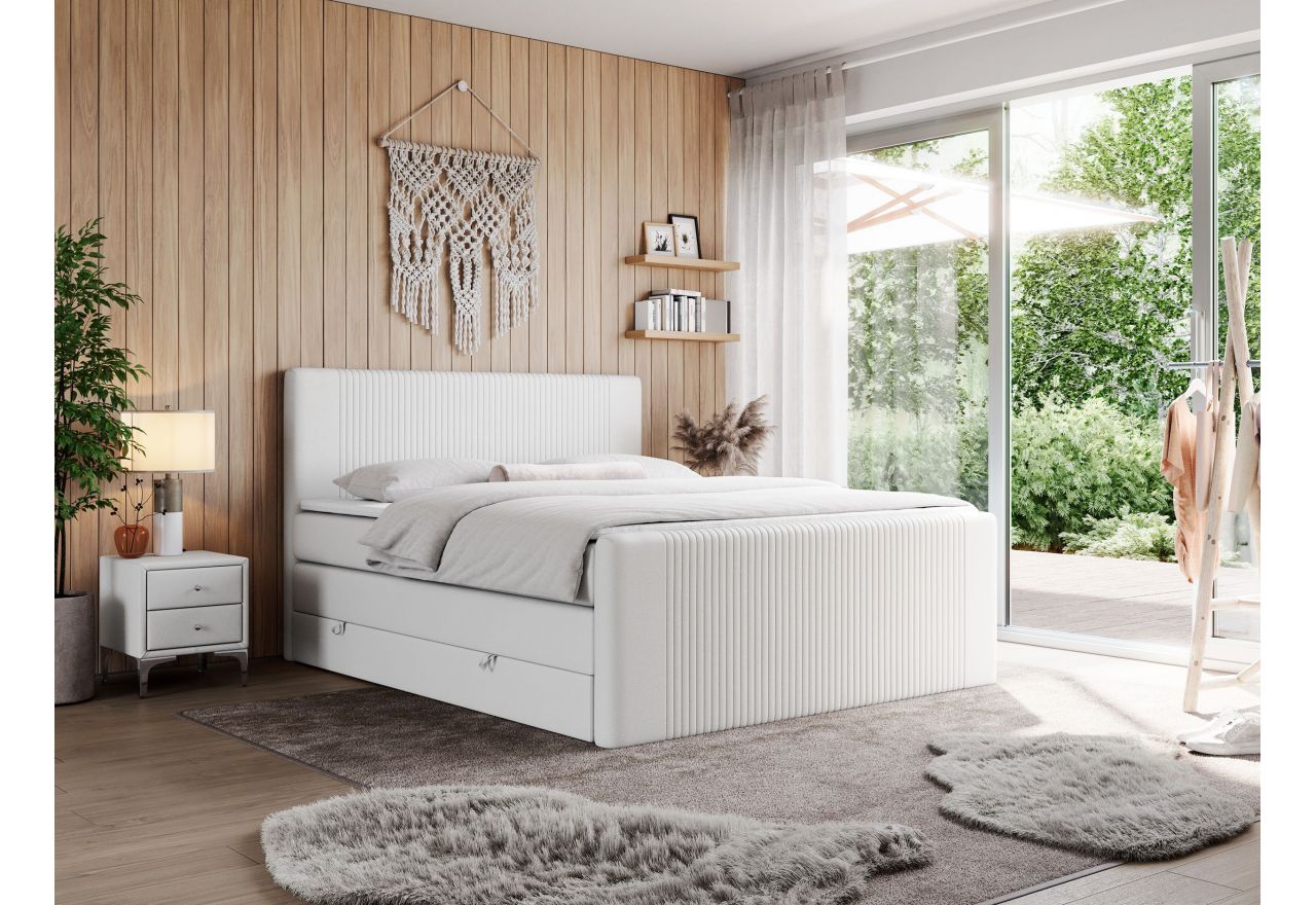 Główny materac kieszeniowy Multipocket dostarcza doskonałego wsparcia dla ciała, dzięki wysokoelastycznej piance T-30 co jest kluczowe dla zdrowego snu. Jego konstrukcja z niezależnymi kieszeniami minimalizuje przenoszenie ruchu. Dodatkowo, materac nawierzchniowy wykończony pianką T-25 zapewnia uczucie miękkości i komfortu, dostosowując się do kształtu ciała. Łóżko wyposażone w 2 poziomy materacy to rozwiązanie podnoszące znacząco komfort snu. Dwa pojemniki na pościel to praktyczne rozwiązanie, które pozwoli na łatwe przechowywanie pościeli i utrzymanie porządku. Automat na sprężynach sprawia, że otwieranie pojemników jest wygodne i szybkie.