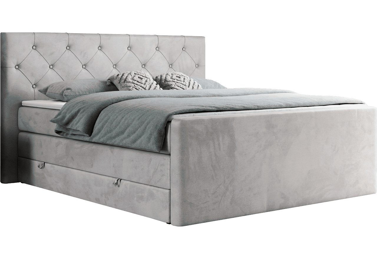Poprzedni arrow_back_ios_newNastępny arrow_forward_iosŁóżko kontynentalne KING VELEN 180x200 - H3 - jasnoszary, welwet