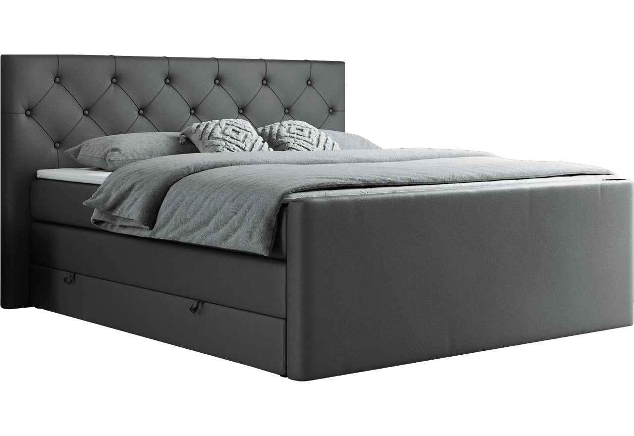 Główny materac kieszeniowy Multipocket dostarcza doskonałego wsparcia dla ciała, dzięki wysokoelastycznej piance T-30 co jest kluczowe dla zdrowego snu. Jego konstrukcja z niezależnymi kieszeniami minimalizuje przenoszenie ruchu. Dodatkowo, materac nawierzchniowy wykończony pianką T-25 zapewnia uczucie miękkości i komfortu, dostosowując się do kształtu ciała. Łóżko wyposażone w 2 poziomy materacy to rozwiązanie podnoszące znacząco komfort snu. Dwa pojemniki na pościel to praktyczne rozwiązanie, które pozwoli na łatwe przechowywanie pościeli i utrzymanie porządku. Automat na sprężynach sprawia, że otwieranie pojemników jest wygodne i szybkie.