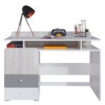 Zestaw mebli COSMO B – składa się z sześciu elementów, które idealnie sprawdzą się w pokoju młodzieżowym. W skład zestawu wchodzą: łóżko, biurko, szafa narożna, półka wisząca i regały. Dzięki połączeniu bieli lux, dębu wilton białego i szarości w pokoju dziecka będzie panował porządek i harmonia. Stwórz wymarzony pokój dla swojego dziecka z kolekcją mebli COSMO!