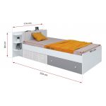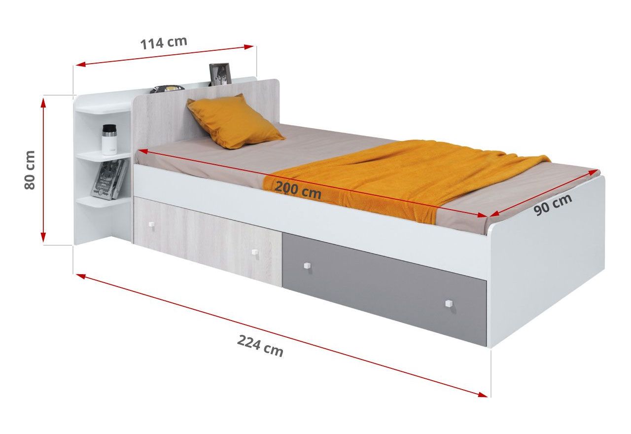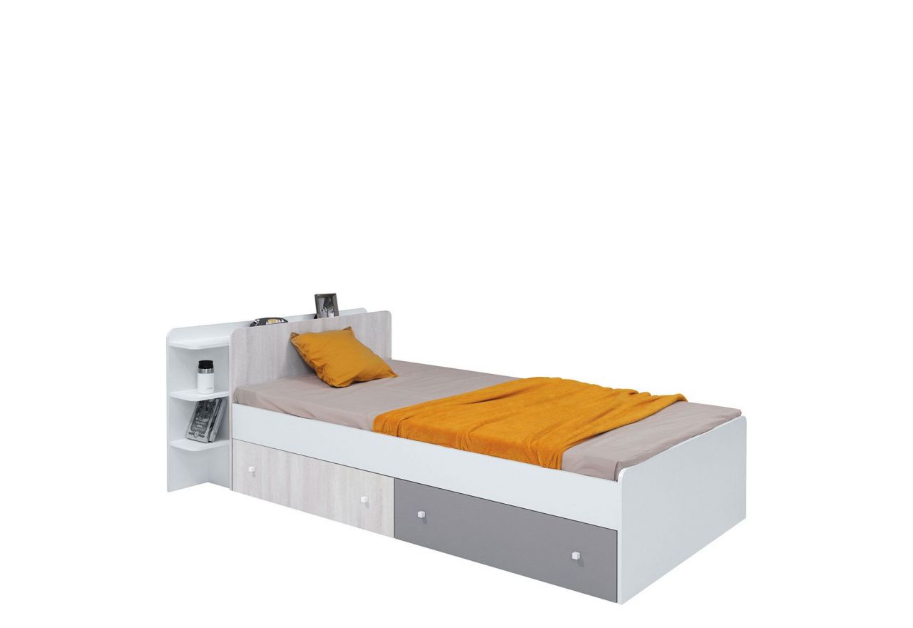 Zestaw mebli młodzieżowych z szafą narożną i łóżkiem 90x200 - COSMO B Biały lux / Dąb Wilton biały / szary