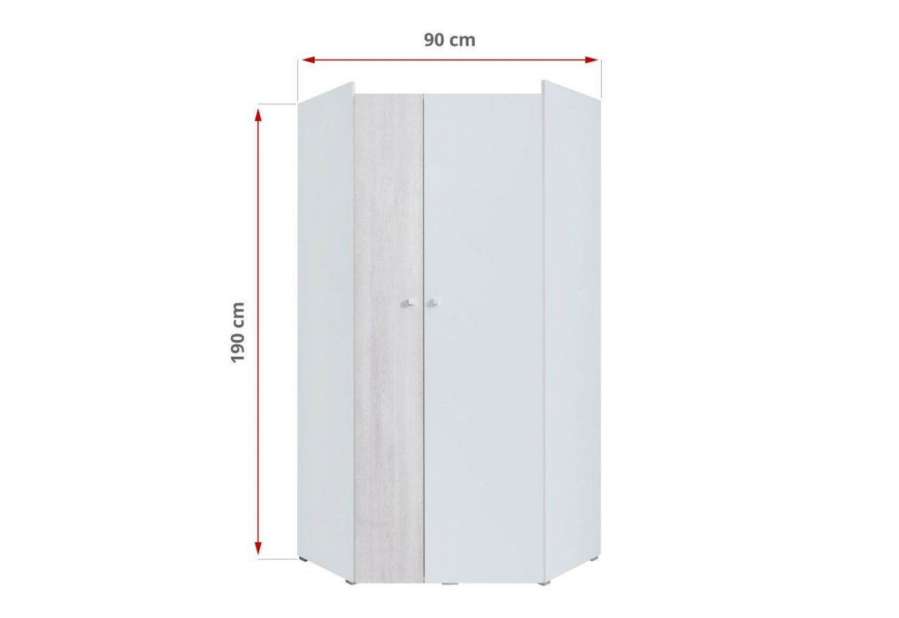 Poprzedni arrow_back_ios_newNastępny arrow_forward_iosZestaw mebli młodzieżowych z szafą narożną i łóżkiem 90x200 - COSMO B Biały lux / Dąb Wilton biały / szary
