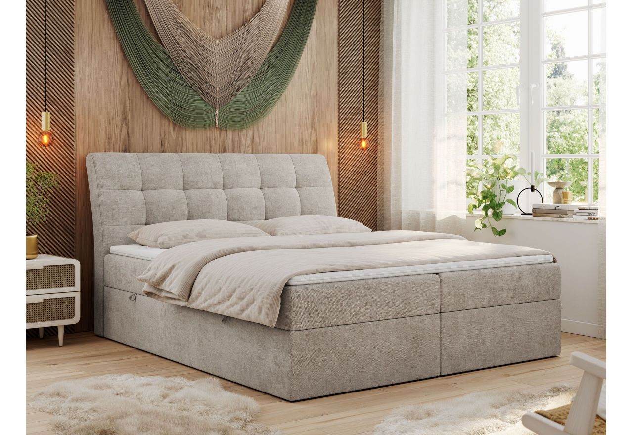 Główny materac kieszeniowy Multipocket dostarcza doskonałego wsparcia dla ciała, dzięki wysokoelastycznej piance T-30 co jest kluczowe dla zdrowego snu. Jego konstrukcja z niezależnymi kieszeniami minimalizuje przenoszenie ruchu. Dodatkowo, materac nawierzchniowy wykończony pianką T-25 zapewnia uczucie miękkości i komfortu, dostosowując się do kształtu ciała. Dwa pojemniki na pościel to praktyczne rozwiązanie, które pozwoli na łatwe przechowywanie pościeli i utrzymanie porządku. Automat na sprężynach sprawia, że otwieranie pojemników jest wygodne i szybkie. Tapicerowany, pikowany zagłówek to prawdziwa ozdoba, która dodaje wnętrzu klasy i staje się centralnym punktem każdej sypialni.