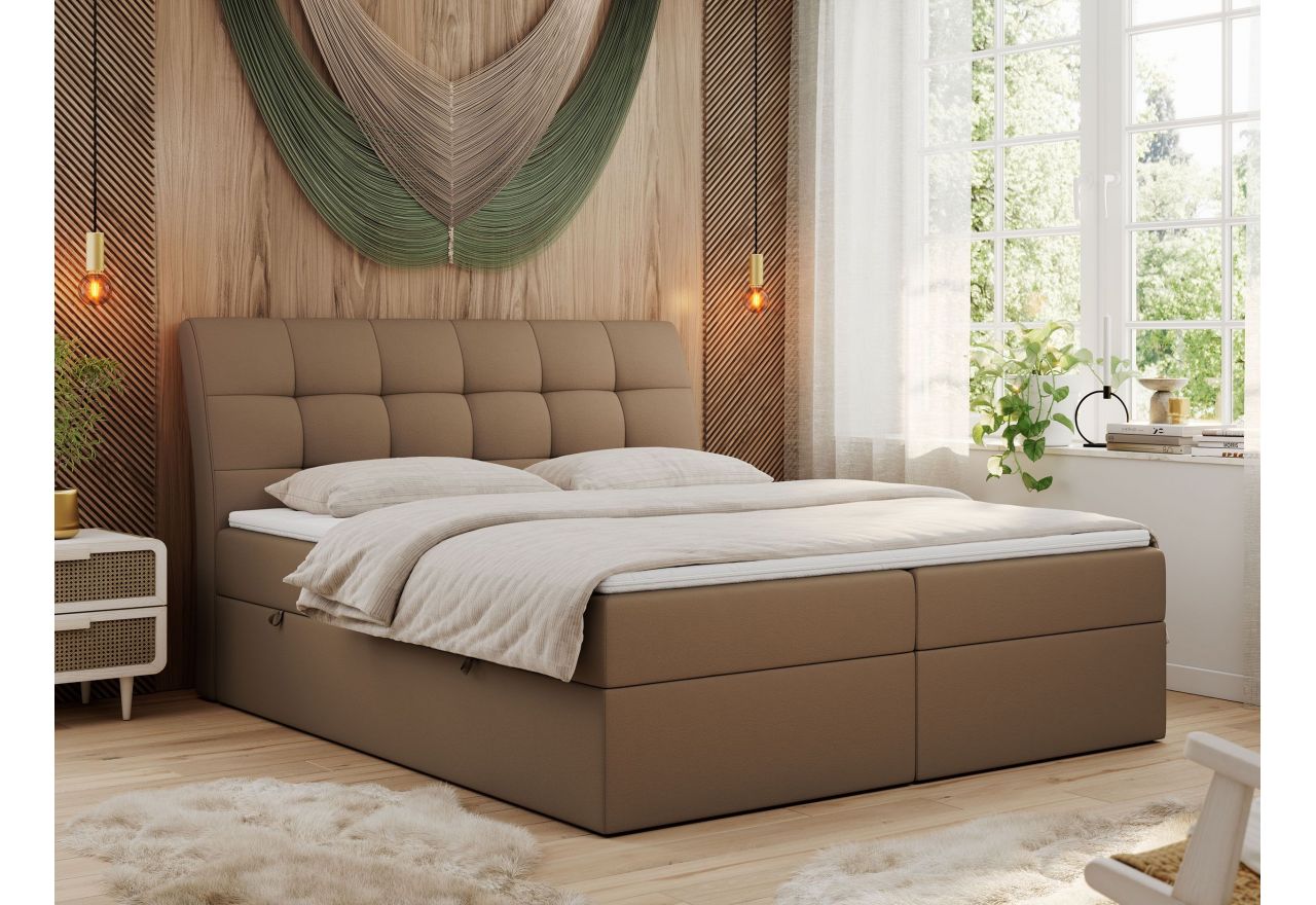 Główny materac kieszeniowy Multipocket dostarcza doskonałego wsparcia dla ciała, dzięki wysokoelastycznej piance T-30 co jest kluczowe dla zdrowego snu. Jego konstrukcja z niezależnymi kieszeniami minimalizuje przenoszenie ruchu. Dodatkowo, materac nawierzchniowy wykończony pianką T-25 zapewnia uczucie miękkości i komfortu, dostosowując się do kształtu ciała. Dwa pojemniki na pościel to praktyczne rozwiązanie, które pozwoli na łatwe przechowywanie pościeli i utrzymanie porządku. Automat na sprężynach sprawia, że otwieranie pojemników jest wygodne i szybkie. Tapicerowany, pikowany zagłówek to prawdziwa ozdoba, która dodaje wnętrzu klasy i staje się centralnym punktem każdej sypialni.