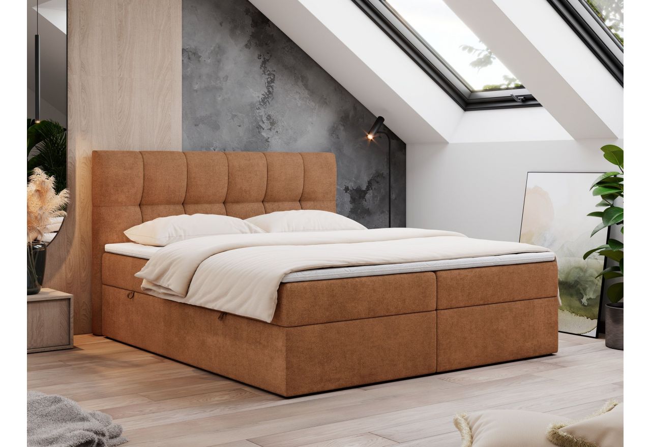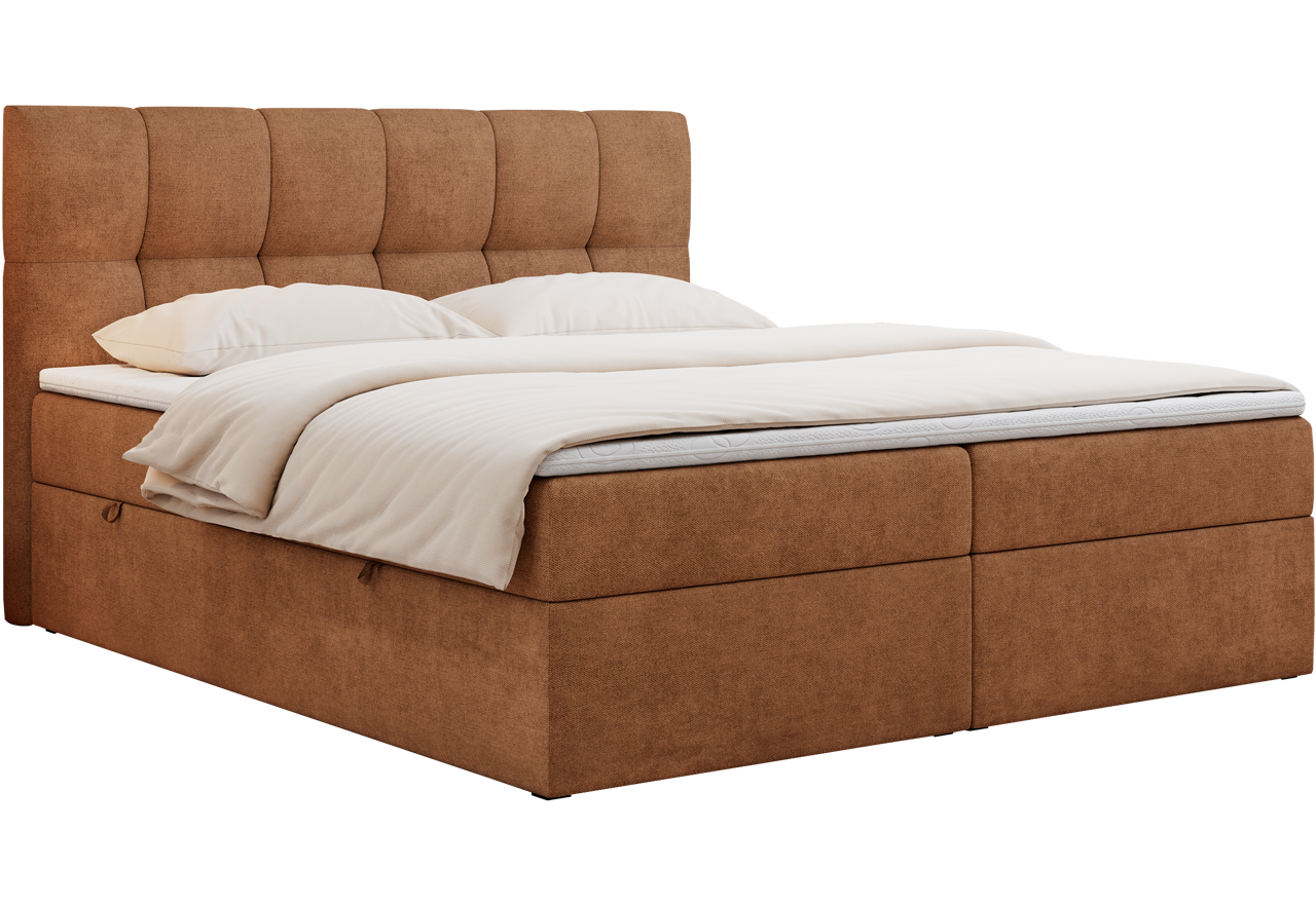 Główny materac kieszeniowy Multipocket dostarcza doskonałego wsparcia dla ciała, dzięki wysokoelastycznej piance T-30 co jest kluczowe dla zdrowego snu. Jego konstrukcja z niezależnymi kieszeniami minimalizuje przenoszenie ruchu. Dodatkowo, materac nawierzchniowy wykończony pianką T-25 zapewnia uczucie miękkości i komfortu, dostosowując się do kształtu ciała. Dwa pojemniki na pościel to praktyczne rozwiązanie, które pozwoli na łatwe przechowywanie pościeli i utrzymanie porządku. Automat na sprężynach sprawia, że otwieranie pojemników jest wygodne i szybkie. Tapicerowany, pikowany zagłówek to prawdziwa ozdoba, która dodaje wnętrzu klasy i staje się centralnym punktem każdej sypialni.