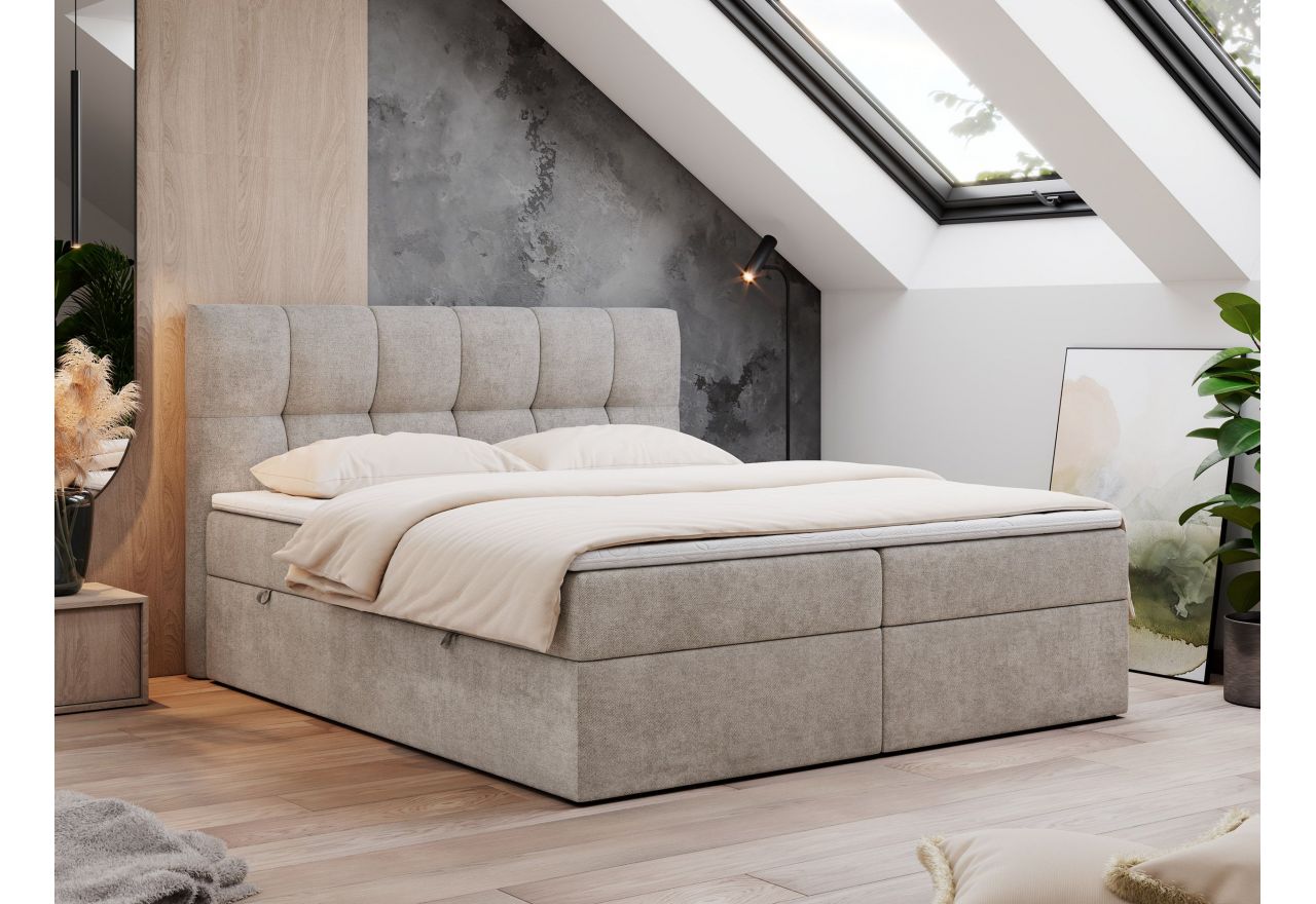 Główny materac kieszeniowy Multipocket dostarcza doskonałego wsparcia dla ciała, dzięki wysokoelastycznej piance T-30 co jest kluczowe dla zdrowego snu. Jego konstrukcja z niezależnymi kieszeniami minimalizuje przenoszenie ruchu. Dodatkowo, materac nawierzchniowy wykończony pianką T-25 zapewnia uczucie miękkości i komfortu, dostosowując się do kształtu ciała. Dwa pojemniki na pościel to praktyczne rozwiązanie, które pozwoli na łatwe przechowywanie pościeli i utrzymanie porządku. Automat na sprężynach sprawia, że otwieranie pojemników jest wygodne i szybkie. Tapicerowany, pikowany zagłówek to prawdziwa ozdoba, która dodaje wnętrzu klasy i staje się centralnym punktem każdej sypialni.