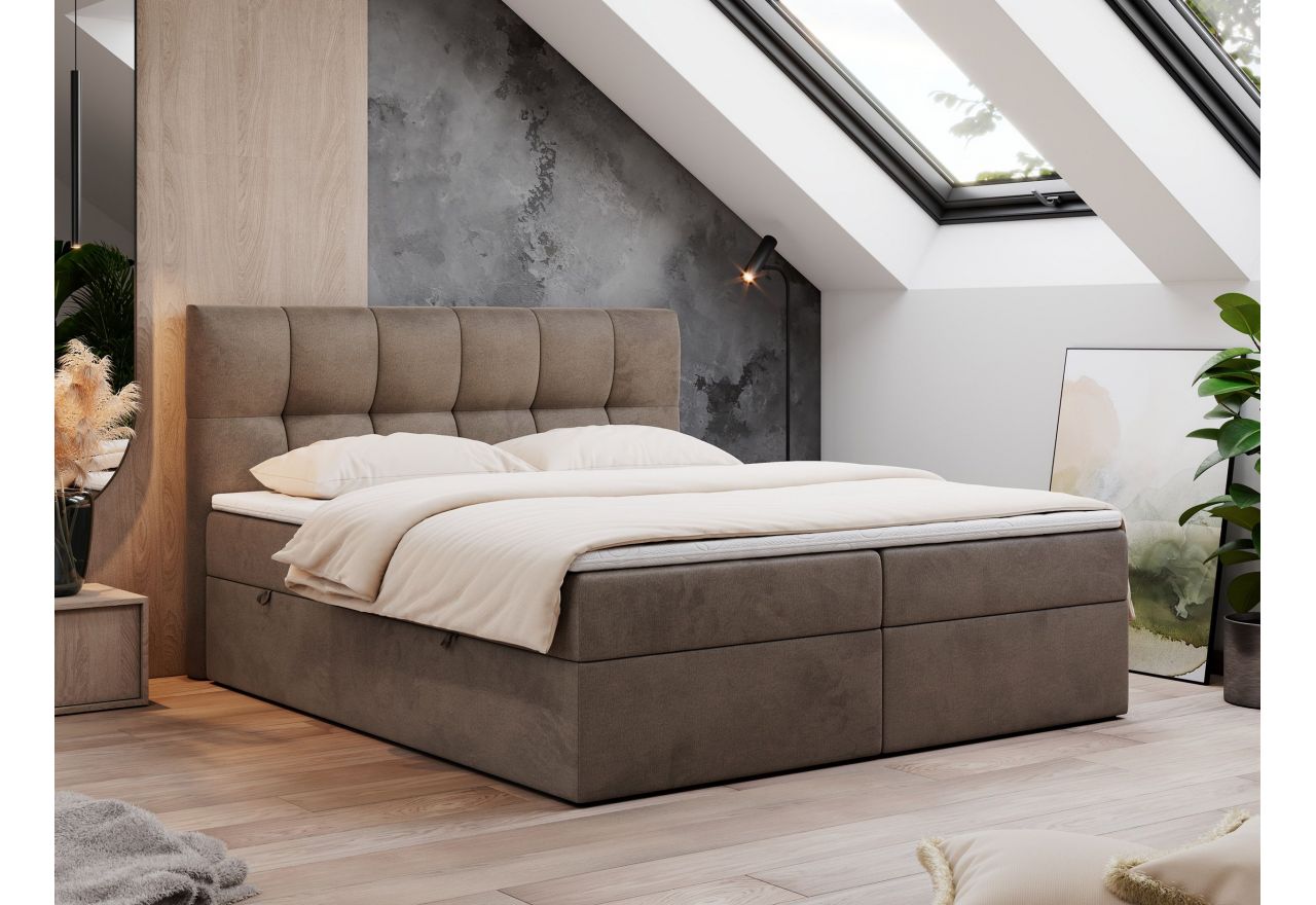 Główny materac kieszeniowy Multipocket dostarcza doskonałego wsparcia dla ciała, dzięki wysokoelastycznej piance T-30 co jest kluczowe dla zdrowego snu. Jego konstrukcja z niezależnymi kieszeniami minimalizuje przenoszenie ruchu. Dodatkowo, materac nawierzchniowy wykończony pianką T-25 zapewnia uczucie miękkości i komfortu, dostosowując się do kształtu ciała. Dwa pojemniki na pościel to praktyczne rozwiązanie, które pozwoli na łatwe przechowywanie pościeli i utrzymanie porządku. Automat na sprężynach sprawia, że otwieranie pojemników jest wygodne i szybkie. Tapicerowany, pikowany zagłówek to prawdziwa ozdoba, która dodaje wnętrzu klasy i staje się centralnym punktem każdej sypialni.