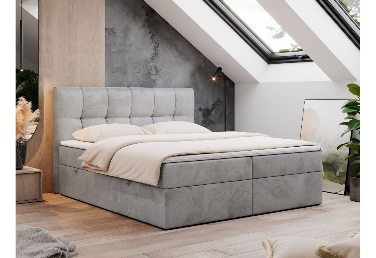 Główny materac kieszeniowy Multipocket dostarcza doskonałego wsparcia dla ciała, dzięki wysokoelastycznej piance T-30 co jest kluczowe dla zdrowego snu. Jego konstrukcja z niezależnymi kieszeniami minimalizuje przenoszenie ruchu. Dodatkowo, materac nawierzchniowy wykończony pianką T-25 zapewnia uczucie miękkości i komfortu, dostosowując się do kształtu ciała. Dwa pojemniki na pościel to praktyczne rozwiązanie, które pozwoli na łatwe przechowywanie pościeli i utrzymanie porządku. Automat na sprężynach sprawia, że otwieranie pojemników jest wygodne i szybkie. Tapicerowany, pikowany zagłówek to prawdziwa ozdoba, która dodaje wnętrzu klasy i staje się centralnym punktem każdej sypialni.