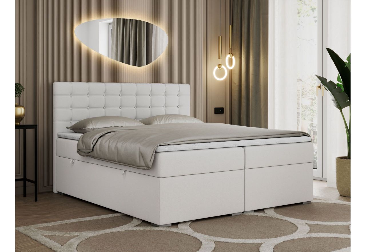 Główny materac kieszeniowy Multipocket dostarcza doskonałego wsparcia dla ciała, dzięki wysokoelastycznej piance T-30 co jest kluczowe dla zdrowego snu. Jego konstrukcja z niezależnymi kieszeniami minimalizuje przenoszenie ruchu. Dodatkowo, materac nawierzchniowy wykończony pianką T-25 zapewnia uczucie miękkości i komfortu, dostosowując się do kształtu ciała. Dwa pojemniki na pościel to praktyczne rozwiązanie, które pozwoli na łatwe przechowywanie pościeli i utrzymanie porządku. Automat na sprężynach sprawia, że otwieranie pojemników jest wygodne i szybkie. Tapicerowany zagłówek to prawdziwa ozdoba, która dodaje wnętrzu klasy i staje się centralnym punktem każdej sypialni.