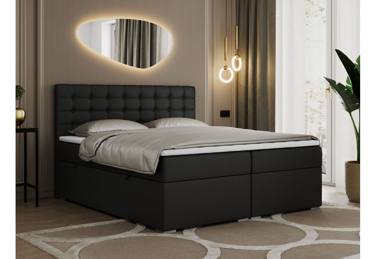 Główny materac kieszeniowy Multipocket dostarcza doskonałego wsparcia dla ciała, dzięki wysokoelastycznej piance T-30 co jest kluczowe dla zdrowego snu. Jego konstrukcja z niezależnymi kieszeniami minimalizuje przenoszenie ruchu. Dodatkowo, materac nawierzchniowy wykończony pianką T-25 zapewnia uczucie miękkości i komfortu, dostosowując się do kształtu ciała. Dwa pojemniki na pościel to praktyczne rozwiązanie, które pozwoli na łatwe przechowywanie pościeli i utrzymanie porządku. Automat na sprężynach sprawia, że otwieranie pojemników jest wygodne i szybkie. Tapicerowany zagłówek to prawdziwa ozdoba, która dodaje wnętrzu klasy i staje się centralnym punktem każdej sypialni.